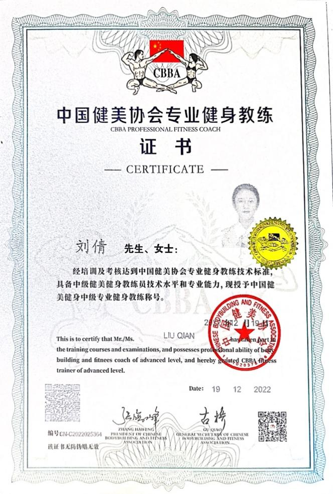 在忙碌的学习和科研之余,刘倩始终怀揣对生活的热爱和追求。她视健身为生活中的重要组成部分,通过持续锻炼,不仅塑造了健康的体魄,还培养了坚韧的意志并有效释放压力。她对健身的热情推动她考取了中国健美协会的初级健身教练证书,展望在健康生活方式的道路上更进一步。