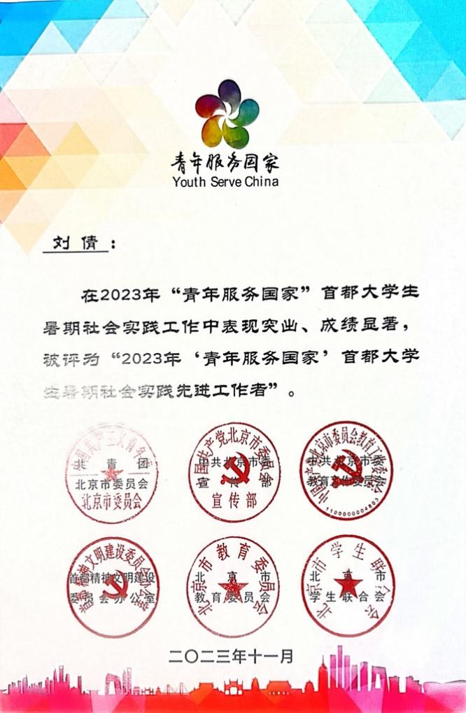 2023年暑期,刘倩担任校团委负责人,协调北京师范大学2023年暑期社会实践活动,管理超过3400名参与师生的实践工作。她的努力和贡献得到了广泛认可,她所撰写的社会实践总结不仅被《光明日报》、学习强国、人民网等多家媒体平台转载,个人也荣获了“2023年首都大学生暑期社会实践先进工作者”的称号。这些实践经验不仅丰富了刘倩的学术背景,更为她未来的研究工作提供了宝贵的第一手资料。