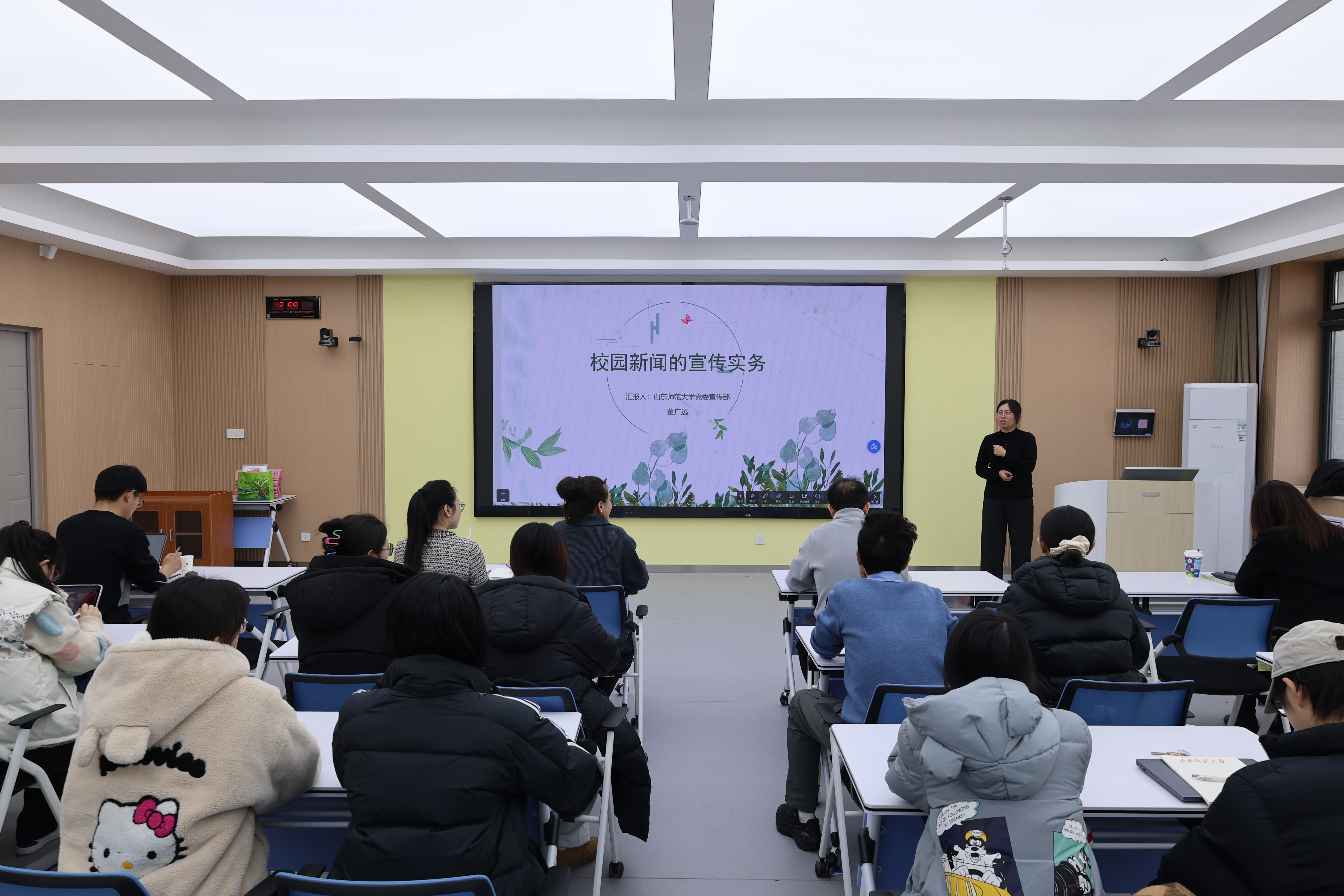 1月23日下午,学院于长清湖校区文济楼开展宣传工作专项培训会,邀请学校党委宣传部新闻宣传科副科长董广远担任主讲。学院党委副书记、纪委书记李山峰,各年级辅导员与学院宣传骨干参加会议。会议由学院学工办主任、团委书记李晓娜主持。