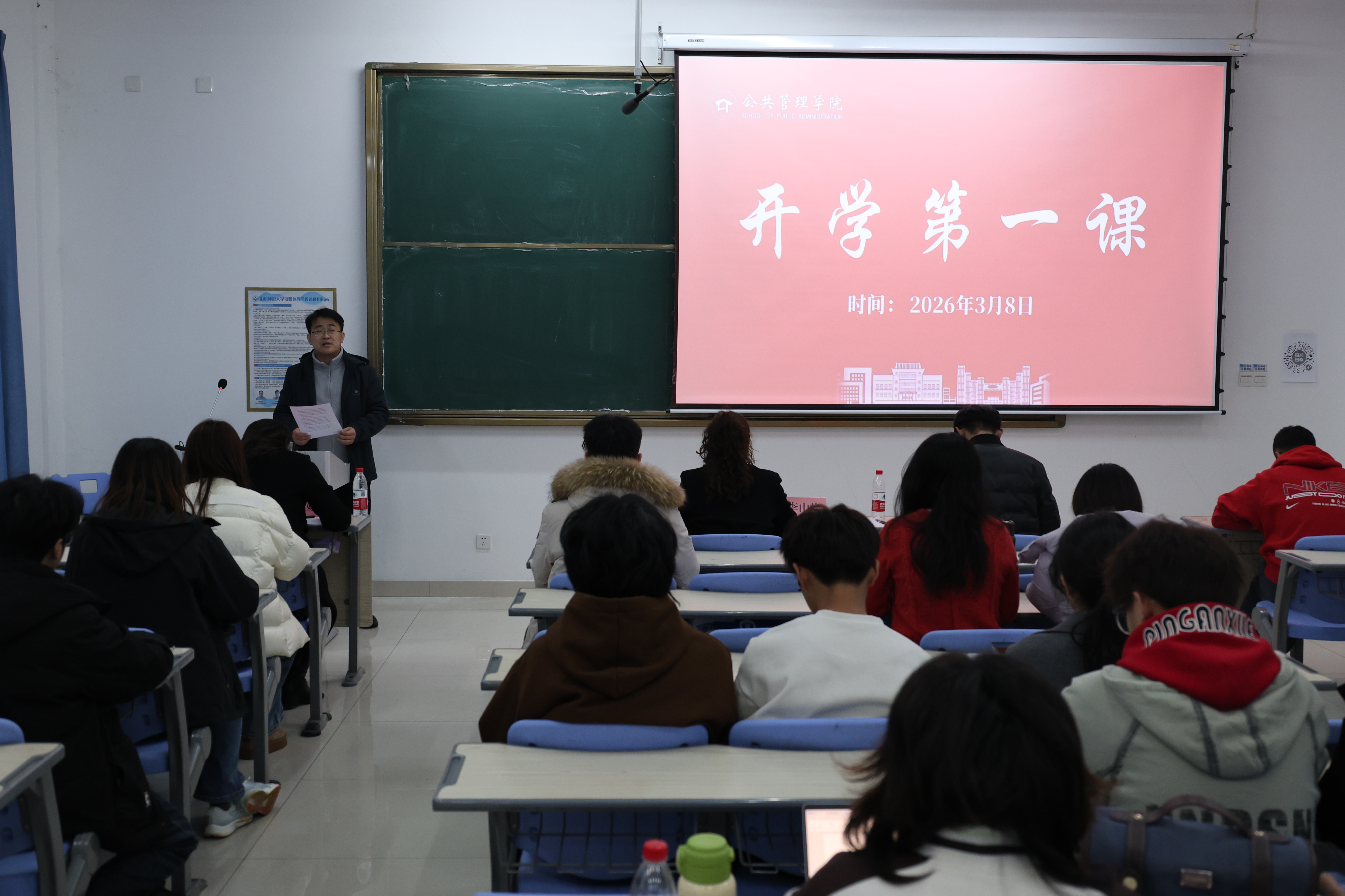 会议第二阶段,李山峰为学生们讲授春季学期的开学第一课。传达了全校干部大会冯继康书记和张建校长的讲话精神,围绕准确把握政治形势和筑强学科核心优势,向学子们进行深刻阐释并表达殷切期望,既为全面开展治理改革提升提供奋斗方向,也进一步激发全体学生攻坚克难的昂扬斗志。