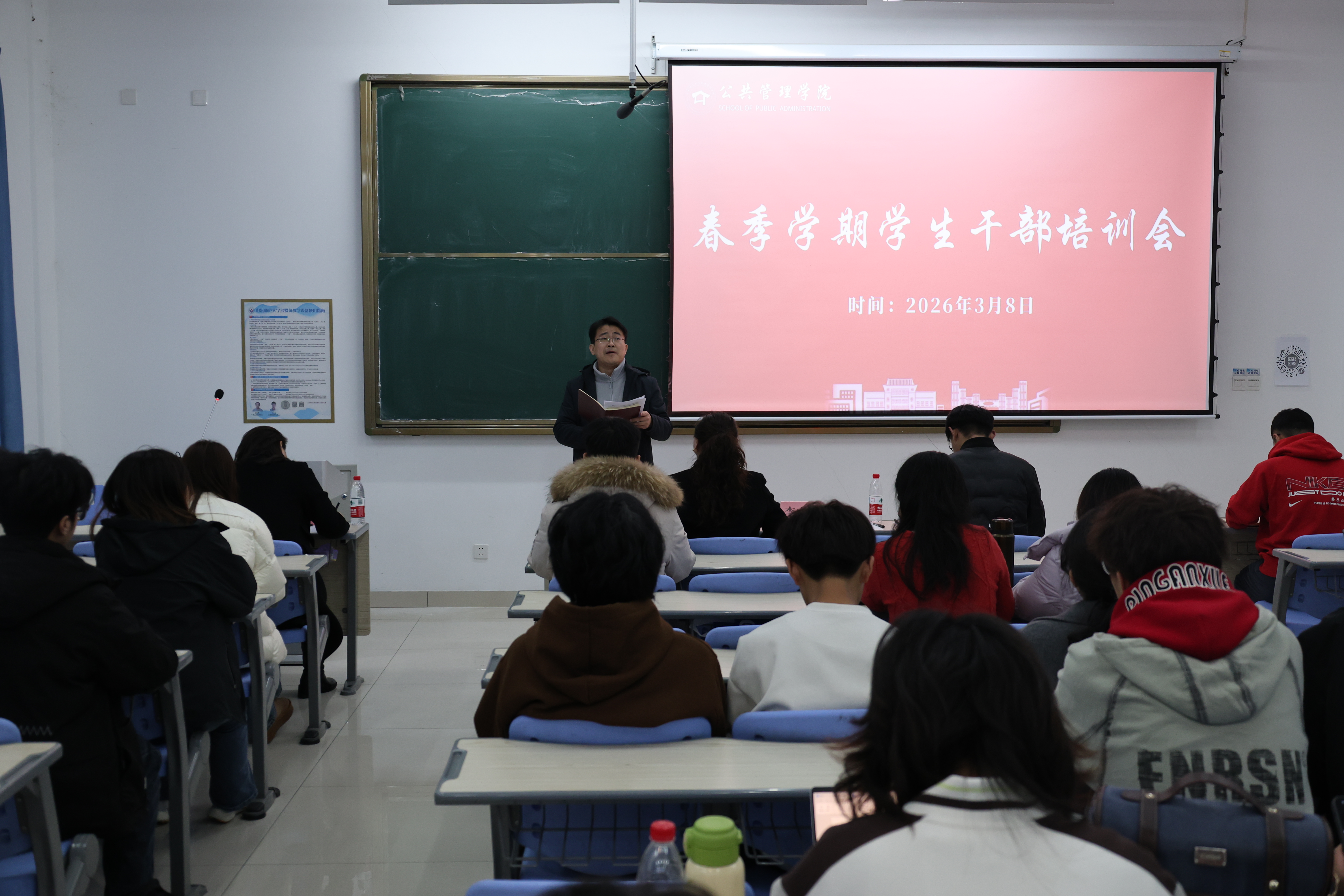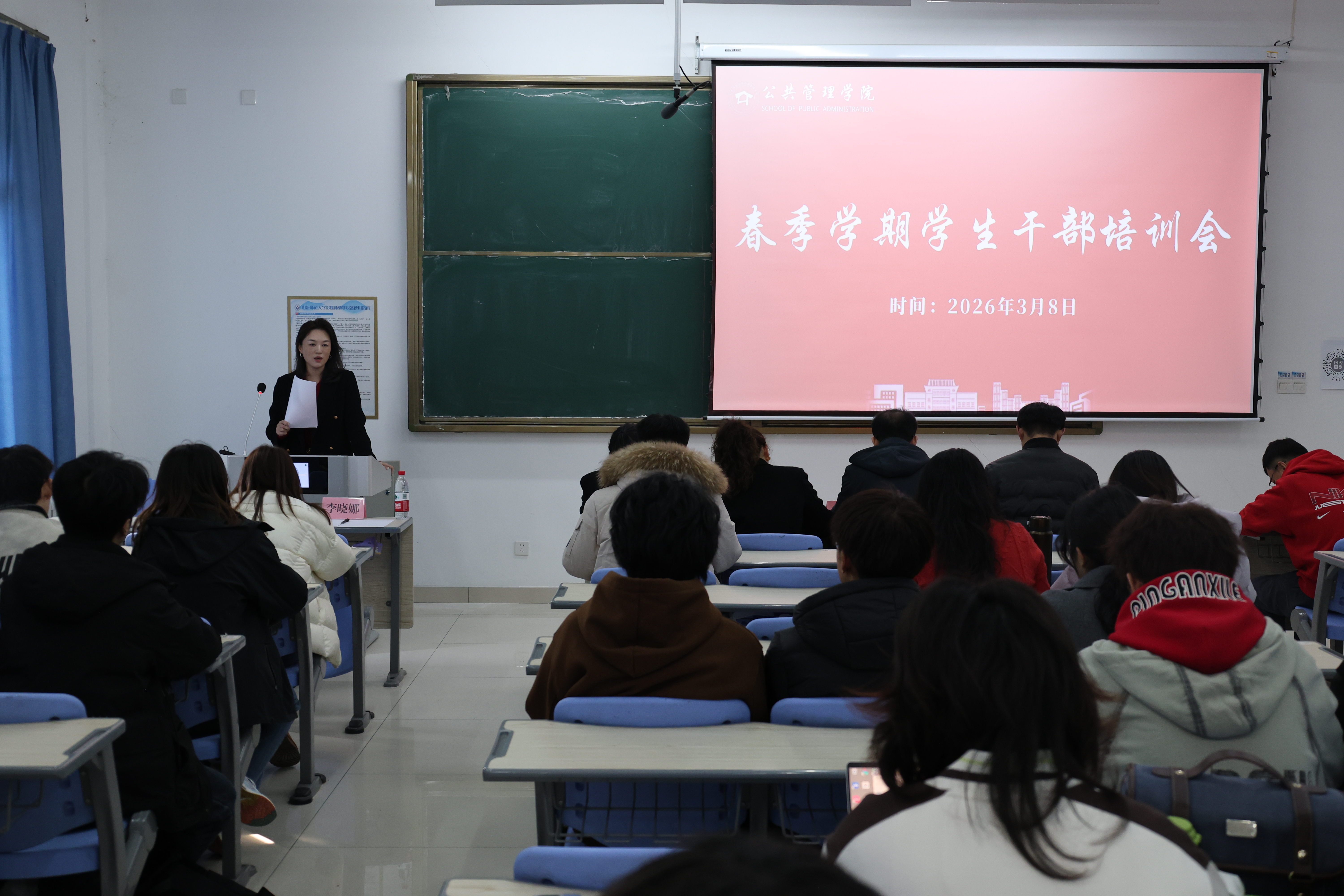 3月8日,学院于长清湖校区文济楼召开春季学期学生干部培训会。学院党委副书记、纪委书记李山峰,各年级辅导员以及全体学生干部到场参加。会议由学工办主任、团委书记李晓娜主持。