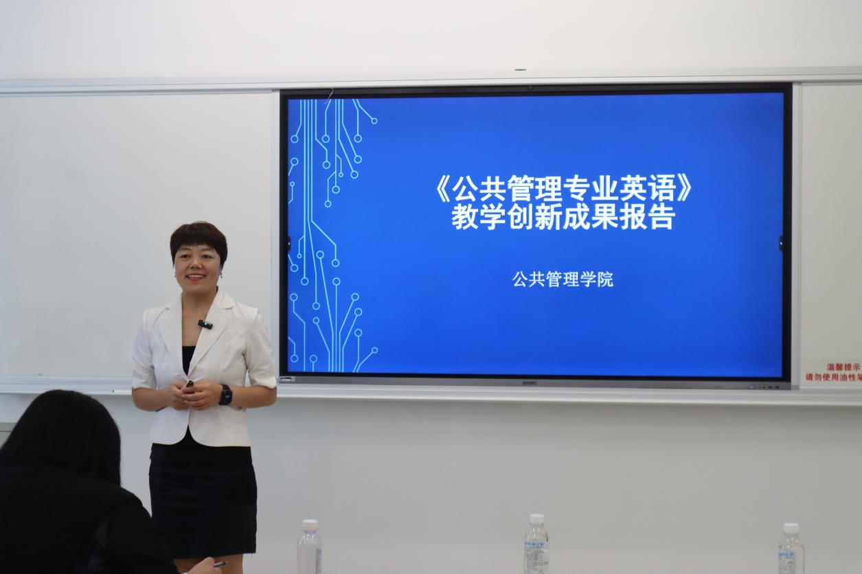 在谭志福简要介绍了与会的领导老师后,刘芳老师宣布了汇报顺序和汇报规则,五位教师轮流进行汇报。首先进行汇报的是行政管理系主任刘伟红,她举例以三国人物为主轴的领导学,树立传统文化体系带动师生互动的创新目标,提高学生的学习积极性,建构教学相长共同体。刘伟红精彩的汇报发言结束后,王赛男开始了以社会统计与SPSS应用为创新课题的汇报,她提到该课题以培养学生学习自主性为主要目标,在课程概述、课程教学的目标与框架、教学环境、教学模式、教学团队等五个方面进行了不同程度的创新。张海霞则以大学生劳动教育课程为创新突破口,她指出该课程的重点在于劳动实践的过程而非结果,以劳树德、以劳育美、以劳增智、以劳育人的劳动教育目标应以创新的形式走入大学课堂。赵建玲围绕公共管理英语的课题为创新点进行汇报,她强调学生学习该课程的学习方法是创新的亮点,规避以往的个体式和被动式的传统学习方法,采取协作化整体化的创新方法,提出以学生全面发展为中心的发展理念。最后,刘芳老师进行汇报,她以管理文秘与公文写作课程为创新课题,从课程规划、推进、评价、成效等四个方面进行创新,采取新型教学模式培养学生发散性思维,鼓励学生积极思考解决学习中出现的问题。