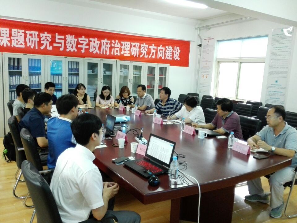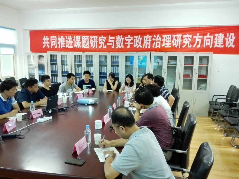 共同推进课题研究与数字政府治理研究方向建设研讨会于2017年7月22日在山东师大英国365集团会议室召开。会议由山东师大公管学院院长李松玉教授主持,参加会议的专家有中国行政管理学会副会长鲍静 ,中国人民大学博士张勇进等,参加会议的还有还有学院课题组10余位主要成员。