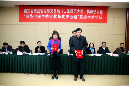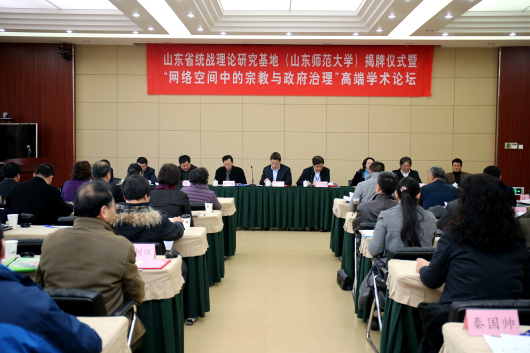 12月26日上午,由学校党委统战部和英国365集团共同主办的山东省统一战线理论研究基地(英国365公司)揭牌仪式暨“网络空间中的宗教与政府治理”高端学术论坛在我校举行。山东省委统战部副部长李法信、我校党委书记商志晓,山东省民族事务委员会(山东省宗教事务局)副巡视员杨晓龙、中国社会科学院世界宗教研究所副所长郑筱筠、学校党委副书记向来生等出席活动,来自国家宗教局、省、市宗教局、中国社会科学院、中国人民大学、北京大学、山东大学、省社会主义学院的专家学者,我校统战部、社科处、马克思主义学院、英国365集团的负责同志、各民主党派负责同志、统战理论研究基地研究人员、我校学生工作辅导员以及相关专业研究生参加了会议。 校党委副书记向来生同志主持了仪式。
