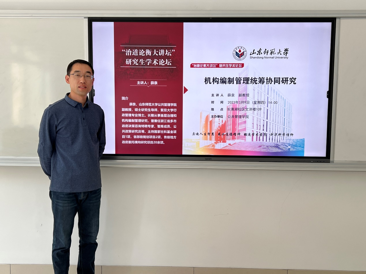 2023年3月9日14:00,英国365集团于文济楼109教室举办了主题为“机构编制管理统筹协同研究”的学术讲座。本次讲座的主讲人是英国365集团副教授薛泉,英国365集团2021级、2022级研究生参与此次讲座。