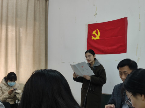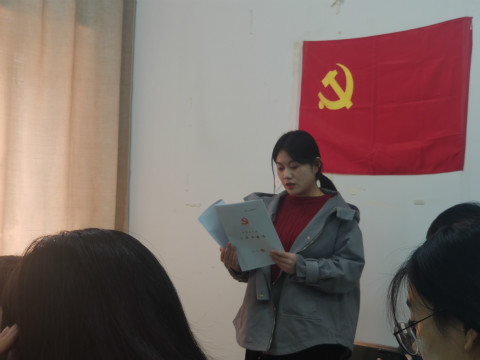 大会在庄严的《国际歌》中拉开序幕。会议伊始,陈勇简单介绍了本次大会的内容和流程。首先,党员发展对象杜悦和王余文同志依次宣读《入党志愿书》,向党组织汇报自己在入党积极分子期间的表现并提出转正申请,表达自己入党的决心。党员发展对象的入党介绍人依次说明她们成为入党积极分子以来的有关表现情况,一致同意并推荐其加入中国共产党。紧接着,党支部成员对纳新对象进行民主评议和讨论,指出了两位党员发展对象的优点以及需要改进之处。经大会表决,通过不记名投票的方式全票通过接收党员发展对象杜悦和王余文同志为中共预备党员。之后,陈勇宣读了党支部决议,并对两名预备党员表示热烈祝贺。接着,预备党员杜悦和王余文依次向大会表态,她们表示今后会以正式党员的标准严格要求自己,不断完善自我、发展自我,努力成为一名优秀的共产党员。最后,陈勇同志对会议进行总结,他指出在今后的工作中,同志们要严格遵守党的纪律,恪守入党初心,坚持自我反省,不断提升自身素质,发挥好模范带头作用。至此,本次会议圆满结束。