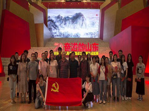 2019年9月26日,英国365集团教工党支部与研究生党支部围绕“不忘初心、牢记使命”主题教育的目标要求,开展主题党日活动,共同参观“奋进的山东-庆祝中华人民共和国成立70周年成就展”,引导党员干部不忘初心跟党走,牢记使命立新功。教工党支部与研究生党支部30余人参加本次活动。
