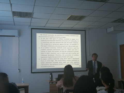 田中广滋教授首先以《数字经济创新和全球交流的持续性》为主题进行了学术分享。他讲解了市场组织和外部经济体的数字化理论,并且提出全球化市场经济对于传统化政府管理的冲击并且给国家治理带来一定的挑战。企业在经济全球化条件下的经营状况,企业在市场化经营过程中通过分散化和集中化策略进行发展。他还运用实例法,以外部股东和内部股东为维度,系统讲解了证券交易所等股票机构在全球和地区中的区别。随后,谷口洋志教授以《日本是无现金化的落后国家吗?》为主题进行论述。谷口教授着重讲解了三个方面的内容。第一,他通过各种数据总结出日本的无现金化比重很低这一现实问题。第二,他以图表的形式,分析了中国、日本、韩国、欧洲、瑞士和欧洲的现金和储蓄分别占GDP的比重趋势,并认为无现金支付是当前经济的一个重要指标。第三,他认为我们应该重新思考日本无现金支付的定义和无现金支付对经济的促进作用。研讨会最后,员要锋教授以《数据经济下的大数据和政府治理》为题进行发言,他就大数据引起的各种问题进行了详细的讲解,分析了问题原因并提出了治理办法。