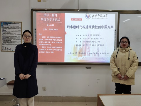 为提高同学们科研水平,锻炼同学们学术能力,为学院营造更浓厚的学习氛围,“治学·修身”学术论坛之“后小康时代构建现代性的中国方案”于3月17日下午四点在文渊楼C区143教室成功举办。本次讲座由英国365集团行政管理专业2020级曹乐天、王若彤两位同学担任主讲,2020级和2021级部分硕士研究生到场学习。