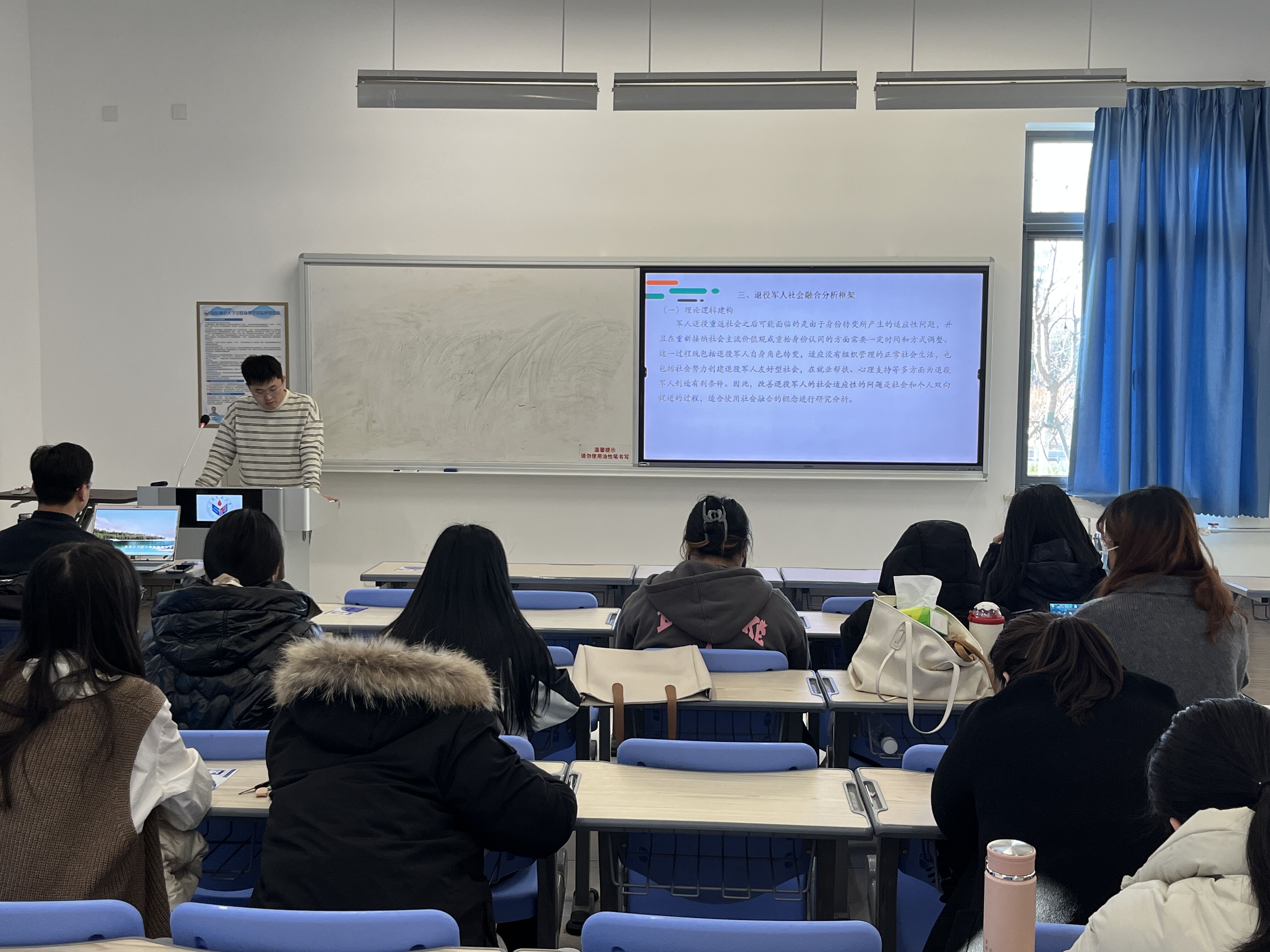 本次学术论坛的顺利举办,使同学们对退役军人回归社会的适应现状有了整体性了解,启发了在场同学对退役军人社会融合进行思考,丰富了研究思路,同时也为学院不同专业之间的沟通交流提供了良好平台,为营造良好的学术氛围发挥了积极作用。(摄影:姚俏善、孙肖)