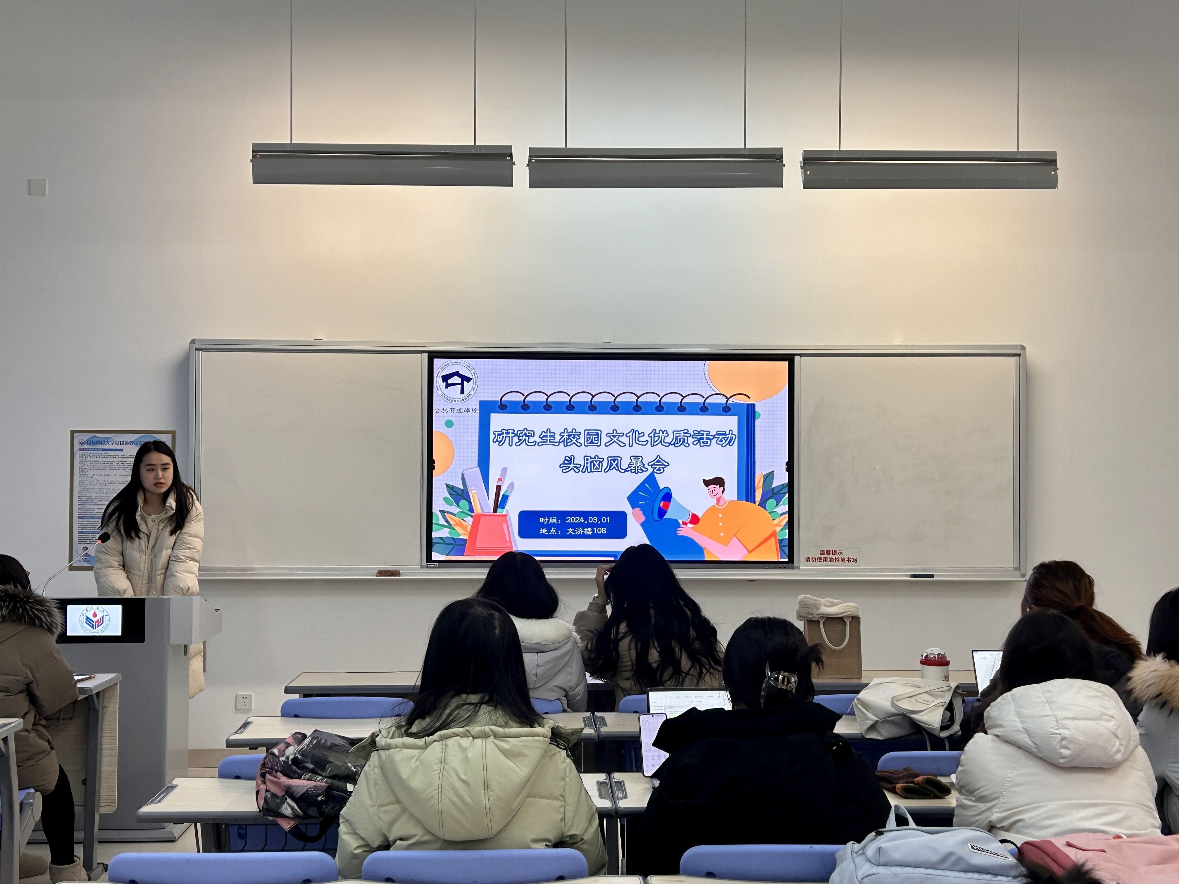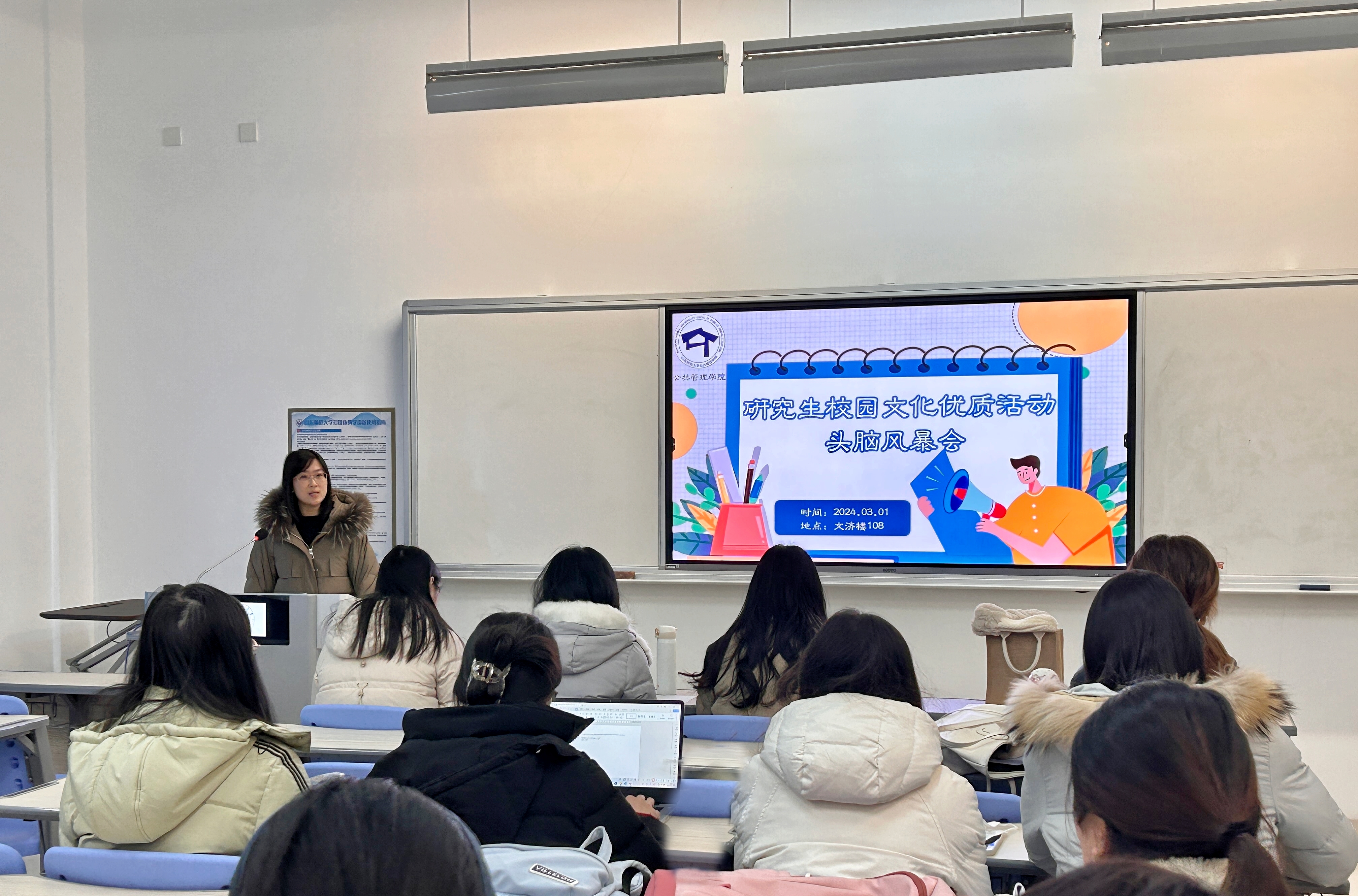 为全面部署新学期研究生工作,凝聚发展共识,3月1日,英国365集团研究生校园文化优质活动头脑风暴会于文济楼108教室顺利召开。研究生辅导员李存老师出席本次会议。本次会议由第十三届研究生会主席朱岚主持,第十三届研究生会全体成员到场参加。