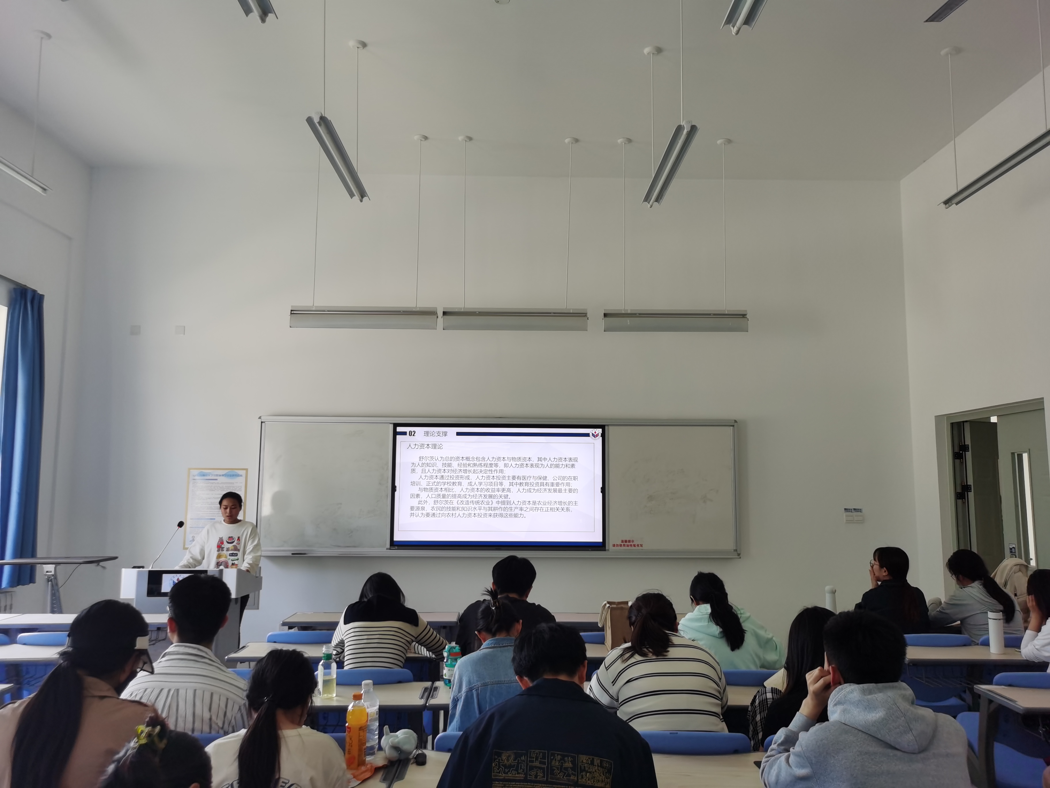 徐巧巧从研究背景、理论支撑、价值意涵、现实困境和对策探究等六个方面出发,对新时代乡村人才振兴展开分析。首先,她表示,我国社会主要矛盾发生了转变,城乡发展不平衡、农村发展不充分问题突出,农村空心化、农业边缘化、农民老龄化成为乡村的现实写照,乡村人才振兴对于促进乡村发展具有重要的作用与意义。她引用舒尔茨的人力资本理论证实了要把人力资本开发放在首要位置释放乡村人才红利,以更好地促进乡村发展。从乡村人才振兴的价值意涵来看,乡村人才振兴有效推动乡村全面振兴,助力农业农村现代化的实现,促进城乡融合发展,确保乡村的可持续发展。