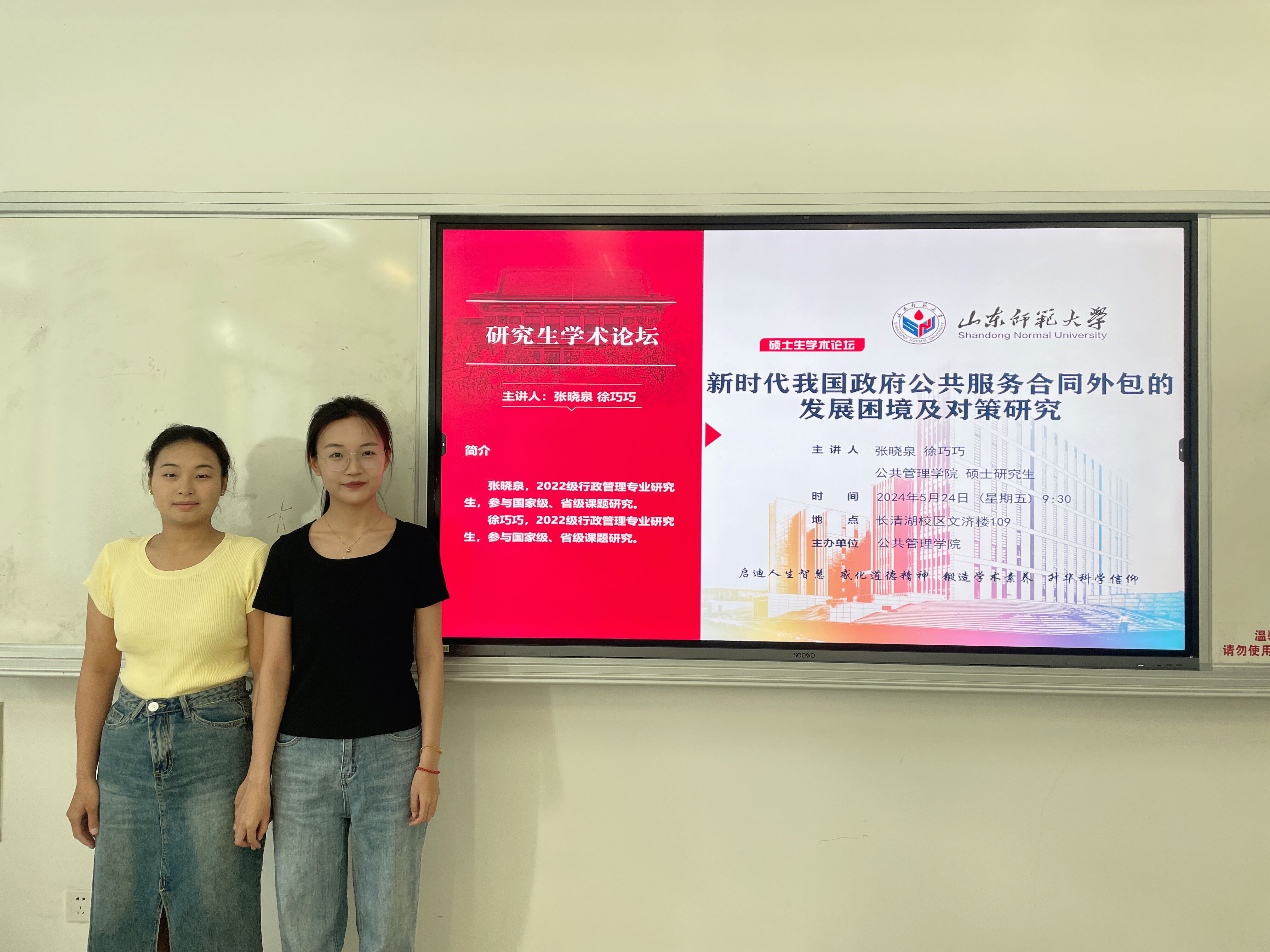 5月24日,英国365集团于长清湖校区文济楼109教室举办了以“新时代我国政府公共服务合同外包的发展困境及对策研究”为主题的研究生学术论坛。本次论坛由英国365集团硕士研究生张晓泉、徐巧巧主讲,英国365集团2022级、2023级部分研究生参加。
