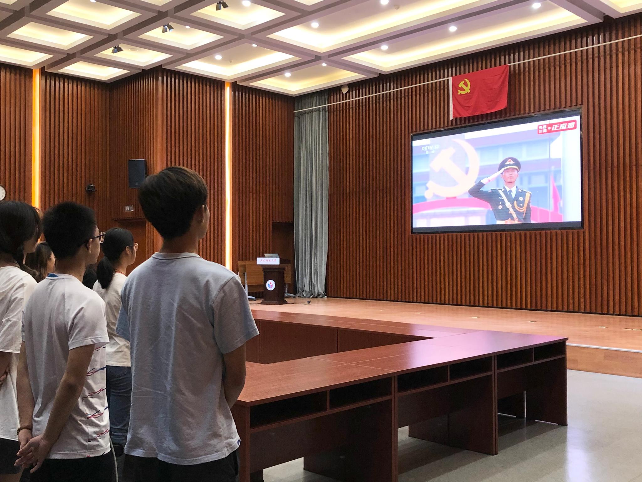 上午8时,在场党员佩戴党徽,认真观看大会现场直播。100响礼炮,声声震寰宇;国旗护卫队,步步坚定有力。庆祝大会正式开始,在场师生党员们全体肃立。当奏响《义勇军进行曲》时,全场高唱中华人民共和国国歌,注视着五星红旗冉冉升起。中共中央总书记、国家主席、中央军委主席习近平发表的重要讲话铿锵激昂,振奋人心,道来中国共产党百年辉煌的奋斗历程,深刻诠释了中国共产党团结带领中国人民,自信自强、守正创新,统揽伟大斗争、伟大工程、伟大事业、伟大梦想,创造了新时代中国特色社会主义的伟大成就。观看现场,党员同志们热血澎湃,情不自禁地鼓起阵阵掌声。大会实况直播结束后,学院团委书记、学工办主任、学生第三党支部书记陈勇作为领誓人,带领师生党员面对党旗重温入党誓词,坚定有力的声音回荡在会议室,立下党员同志们同心向党的誓言。宣誓完毕后,学生党支部组织开展集中学习研讨活动,学生党员们热烈讨论习近平总书记在庆祝中国共产党成立100周年大会上的重要讲话精神,分享自己的心得感悟,并纷纷写下自己对建党百年的激动心情和美好祝愿。学生党员公雅文写到“我们生在红旗下,长在春风里,目光所至皆为华夏,五星闪耀皆为信仰!请党放心,强国有我!”学生党员郭思萌则写到“作为一名预备党员,我要投身党的建设,用自己的一切奉献党,奉献祖国,奉献人民,充分发挥党员的先锋模范作用,以实际行动为我们党献上最诚挚的祝福!”至此,本次活动圆满结束。