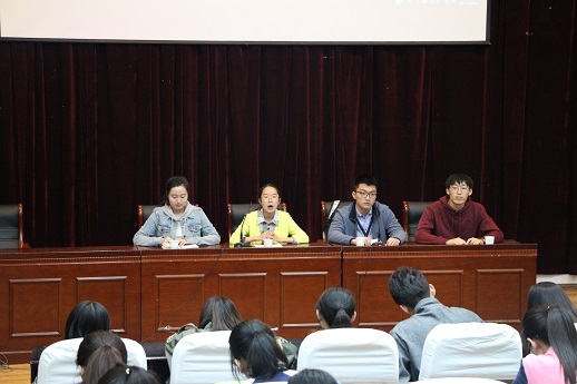 交流会伊始,徐鹏飞首先对本次交流会的目的与意义进行了简要的陈述,接着,陈勇向大家具体介绍了本次交流会的流程和邀请到的四位优秀毕业生,他表示,优秀毕业生的经验是一笔宝贵的财富,大家要认真聆听并加以借鉴。首先进行经验分享的是通过上海市国家公务员考试,来自2013行政管理班的高燕,她表示备考要善于借助专业机构帮助,多做习题,并针对每天的学习进行及时反思,要保持自信。紧接着2013级行政管理专业卓越班的罗云燕分享经验,她则成功通过了茂名市的国家公务员考试。罗云燕着重强调了考试报名的技巧,岗位要求严格将会减小竞争压力。接下来来自2013级行政管理班,已经成功通过青岛市国家公务员考试的鲍硕进行经验交流,他首先向大家介绍了近几年考公的情况,并指出要有自己的目标,不要随波逐流,学会坚持。最后进行分享经验的是来自公共事业管理专业,也成功通过了青岛市国家公务员考试的刘同龙,他以幽默诙谐的方式讲述了自己的考公经历,让大家对考公有了新的认识。他希望同学们要保持良好心态,尤其在面试过程中,自信才是成功的保证。随后,陈勇进行总结发言,针对四名同学的经验一一进行评价,他强调经验并非适合所有人,要根据自身情况灵活应变,关键在于执行。最后,陈勇与优秀学生针对大家的疑问进行一一解答。至此,此次交流会圆满落下帷幕。