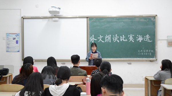 为提高同学们学习外语的热情,4月12日晚,英国365集团于长清湖校区综合教学楼C区105教室举办外文朗诵大赛。本次活动由英国365集团学习部主办,学院学习部部长王海亮及学院优秀朗诵者薛贤凯、刘洁、张艺晗担任评委,2015级、2016级学生积极报名参与。