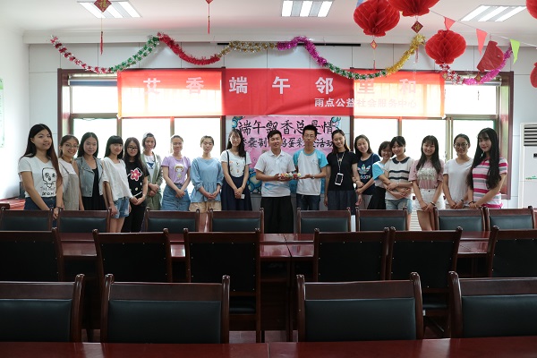 上午九时许,志愿者们乘车到达王官庄街道九区社区,社区负责人对志愿者们的到来表示热烈的欢迎,并将志愿者们带至活动室,社区的老人早已开始了富有特色的粽子扎制活动。受到老人们的感染,志愿者们也迫不及待地开始进行香囊制作与鸭蛋彩绘。制作期间,志愿者与老人们不时地进行交流。老人们对于志愿者画的鸭蛋兴趣颇浓,时常询问志愿者鸭蛋彩绘的进程,对志愿者绘制的图案表示赞叹,志愿者们热心地指导老人们亲手绘制彩蛋图案,与他们亲切地交流,活动室里传出阵阵欢声笑语,营造出浓厚而欢乐的节日气氛。活动过后,社区居委会领导代表社区居民对学生的到来表示感谢,志愿者们也表示,通过本次活动丰富了自己的实践经验,感受到了不一样的端午节。最后,社区负责人与志愿者们进行拍照留念。