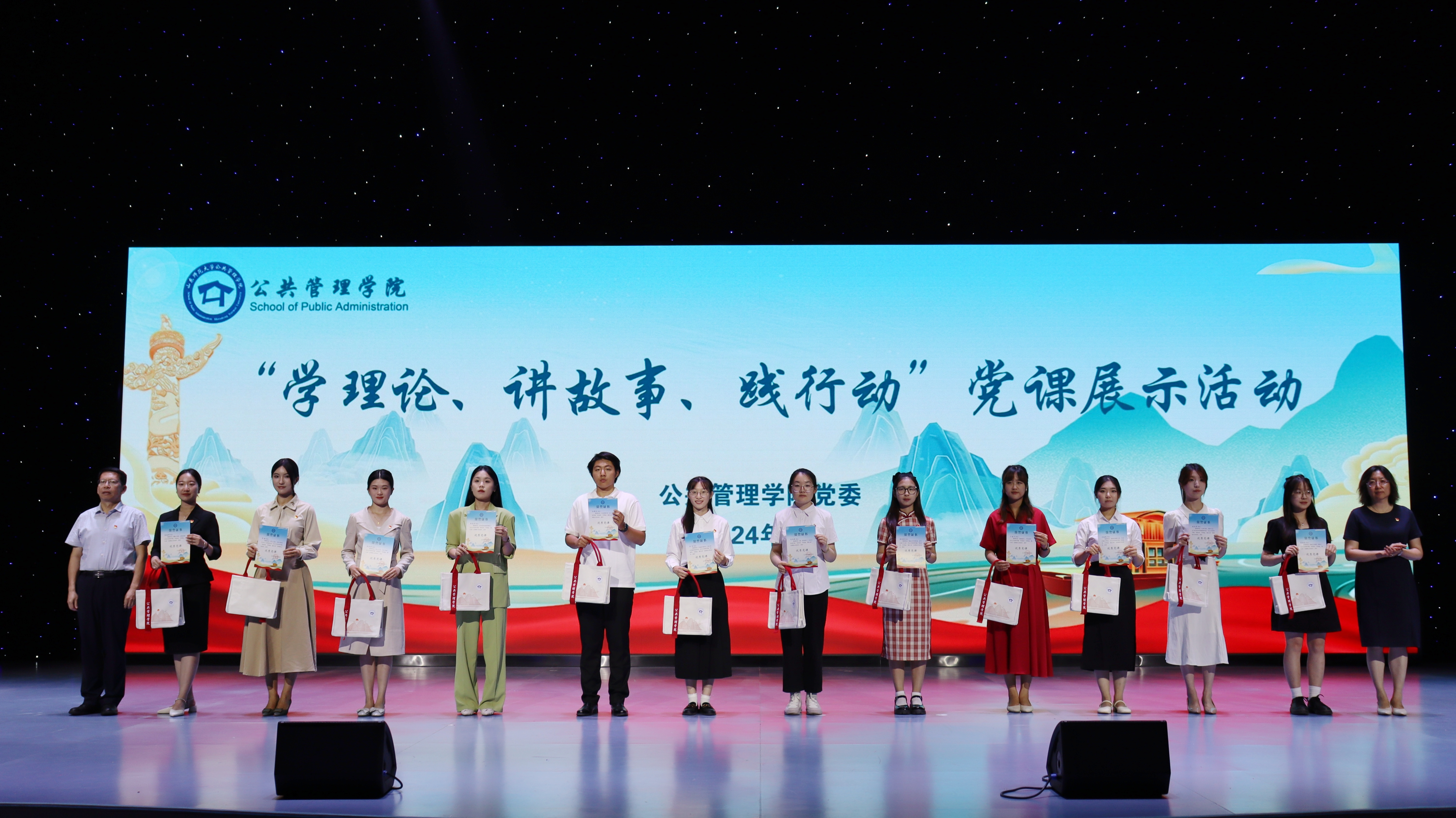 6月20日下午,学院在长清湖校区文浚楼演播厅举办“讲故事、学理论、践行动”党课展示活动。党委常委、副校长周珊珊,党委常委、宣传部部长于晓明出席活动。学生工作部、党委办公室、党委组织部、党委宣传部、党委统战部、研究生院相关负责同志,学院领导班子、师生代表参加活动。