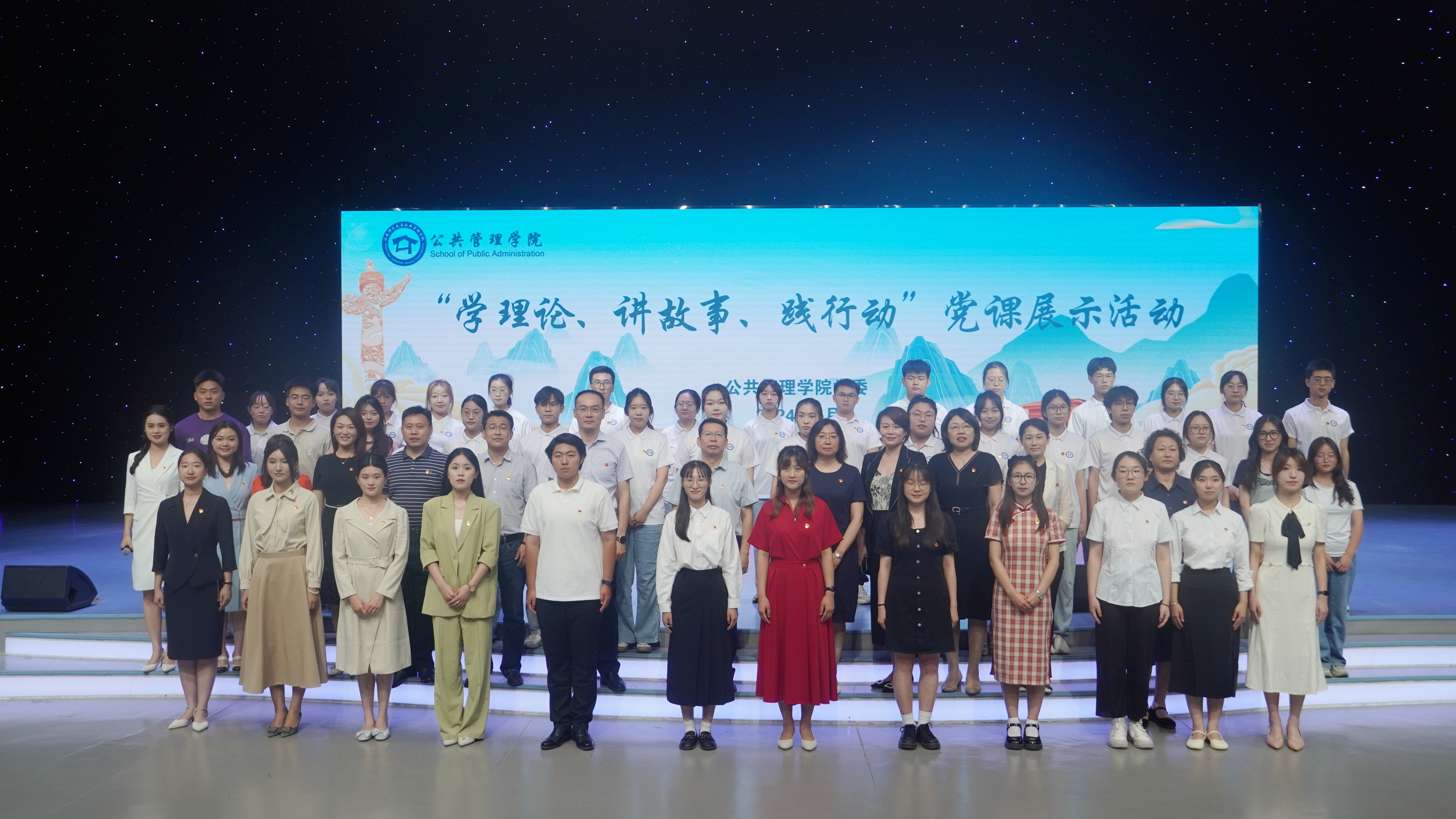 来自学院不同年级和专业的12位本科、研究生党员学生依次登台分享学习心得体会。卓行本2201班的弥越群以《圆民上岸梦,心系舟水情》为题,讲述了习近平总书记关注连家渔民的生活困境并决定改善他们生活条件的故事,谈了自己对乡村振兴的认识。社保本2101班的张凯丽以《青春是给祖国的献礼》为题,从习近平总书记给猎鹰突击队的回信讲到习近平总书记对大学生的寄语,不负时代,不负韶华。行管研2301班的于惠凡讲述了习近平总书记为正定找到半城郊型经济发展道路和“扯开嗓门喊人才”的故事,畅谈对调查研究、县域治理的思考。教管研2301宋佳雯讲述《习近平在福建》系列故事,分享了自己在家乡社区参加社会实践的经历。社保研2301班的栾雪以《从迷茫到坚定,成长是青春最好的答案》为题,讲述习近平总书记在梁家河的7年成长,鼓励大家勇于接受艰苦生活的磨砺。他们用自己的亲身经历和感悟,展示了新时代青年的风采和担当,活动现场气氛热烈。