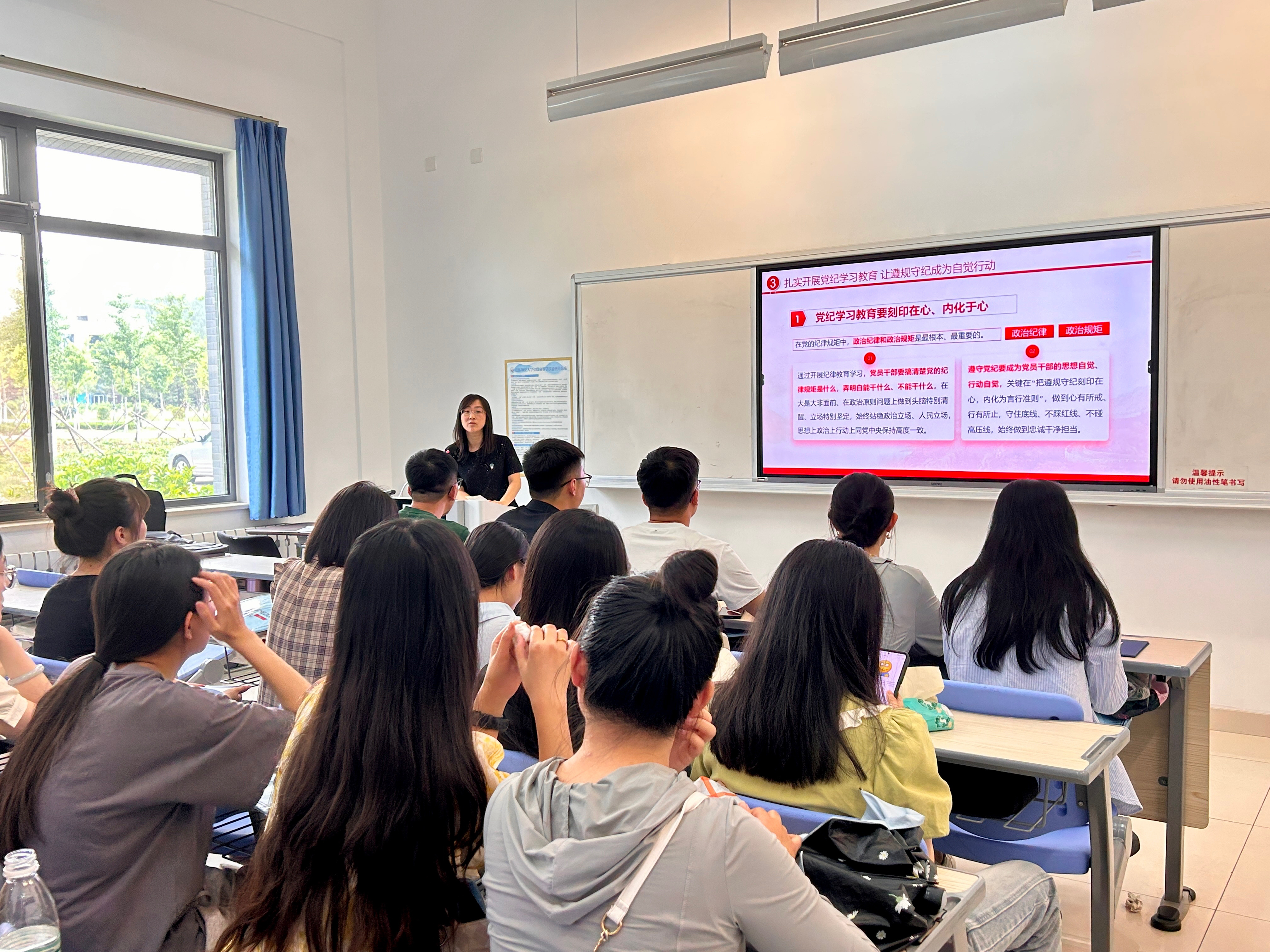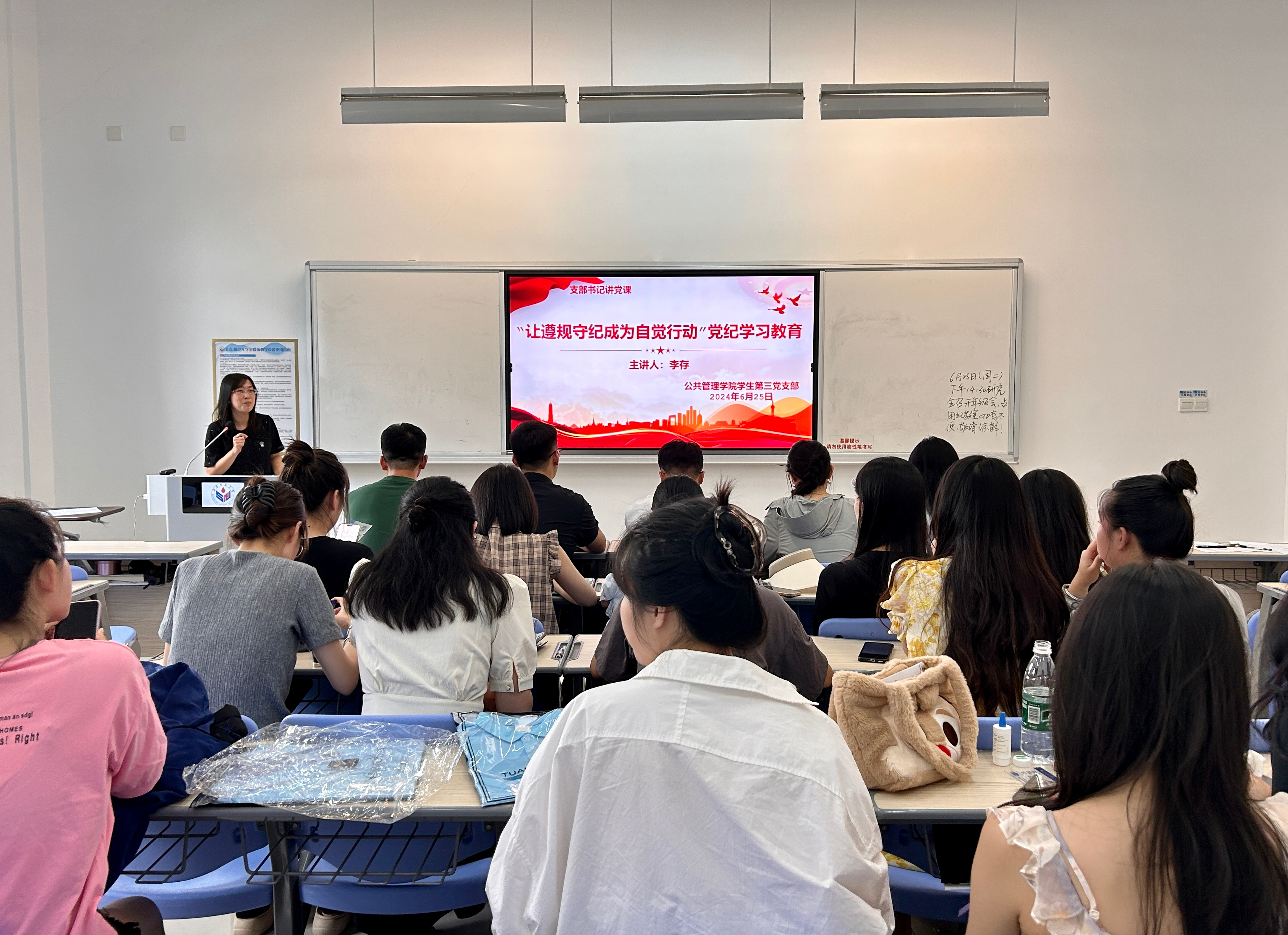 为深入开展党纪学习教育,强化毕业生党员党性修养,教育引导毕业生党员在新的征程中继续发扬党的优良传统,用实际行动践行党的宗旨,展现新时代党员风采。6月25日,英国365集团学生第三党支部于文济楼108教室开展“让遵规守纪成为自觉行动”党纪学习教育。此次活动也是支部书记为毕业生党员上的最后一堂党课,活动由学院学生第三党支部书记李存主讲,2024届毕业生党员到场学习。