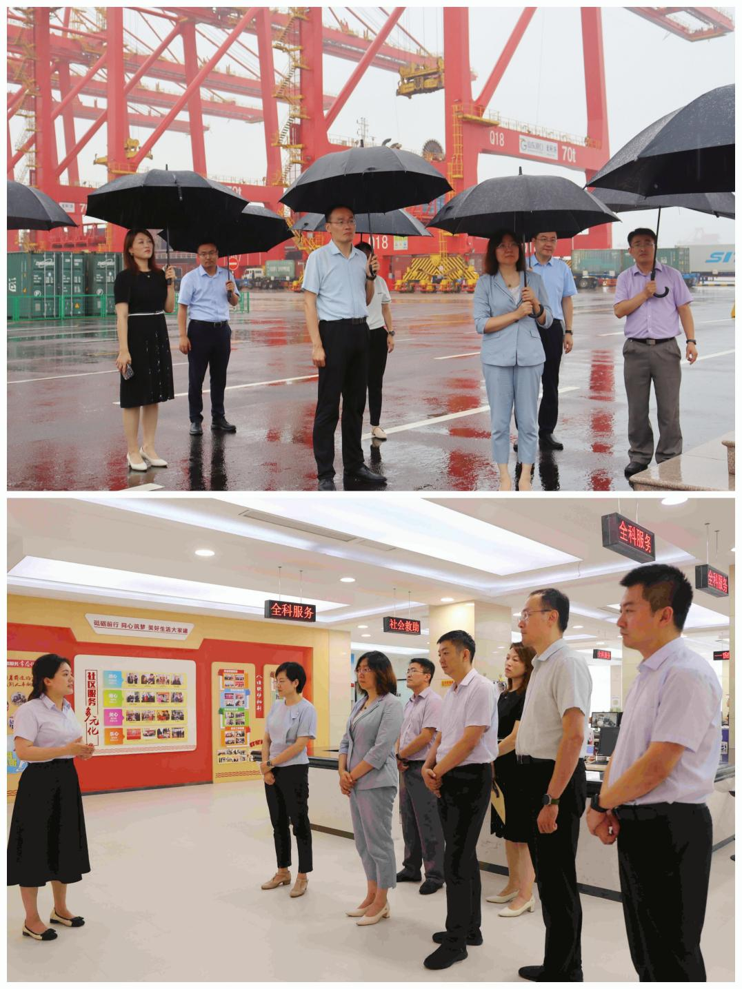 周珊珊一行参观了日照港展览馆和全自动化集装箱码头,到“全国民主法治示范社区”石臼街道银海社区调研了解基层治理工作,并在银海社区居委会为学院社会实践基地揭牌。