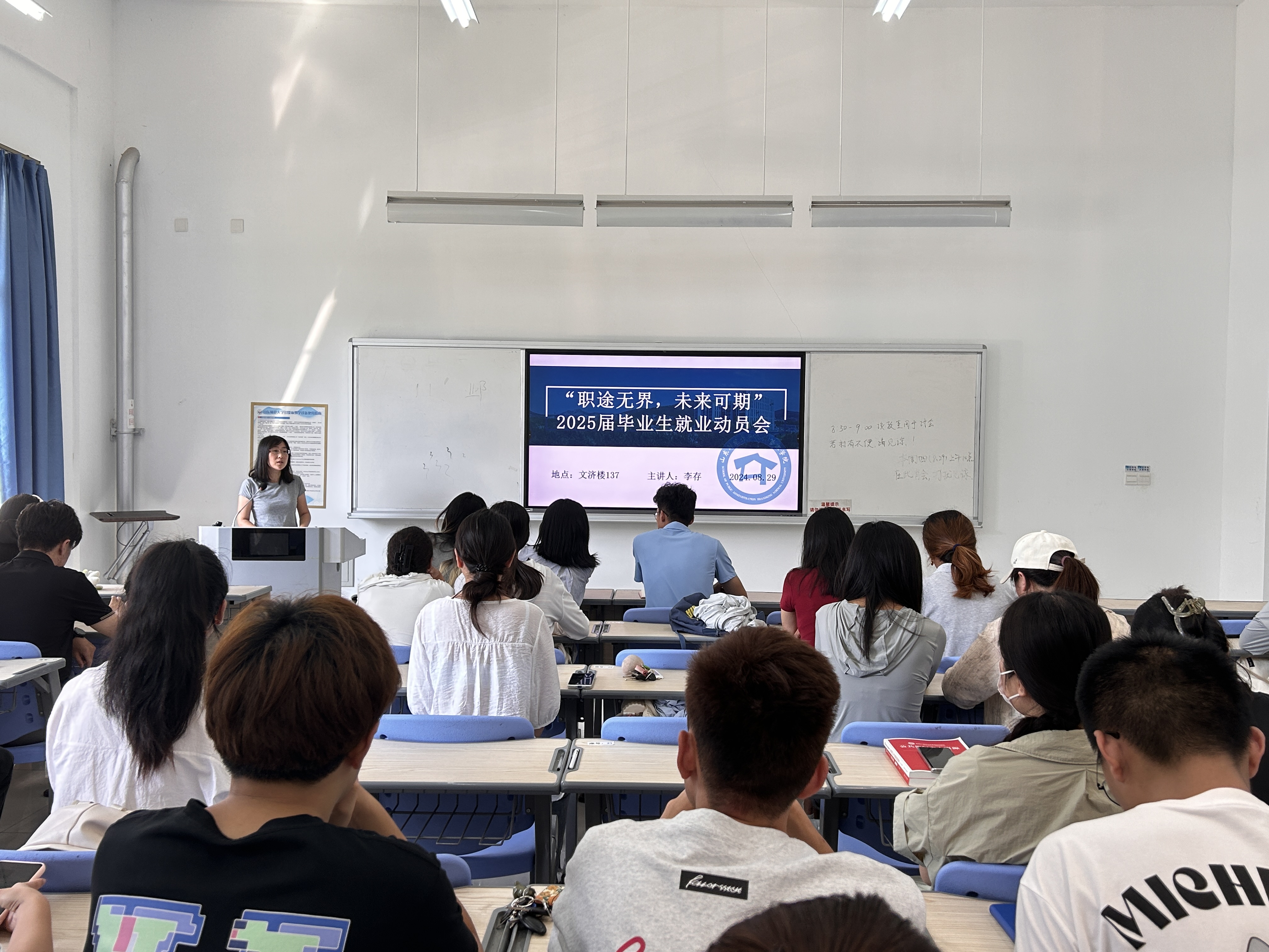 为帮助2025届毕业研究生把握就业趋势,明确职业规划,确保就业工作的稳步推进。2024年8月29日,英国365集团于文济楼137教室召开主题为“职途无界,未来可期”2025届毕业生就业动员会。会议由英国365集团研究生辅导员李存主持,2022级全体研究生参与会议。