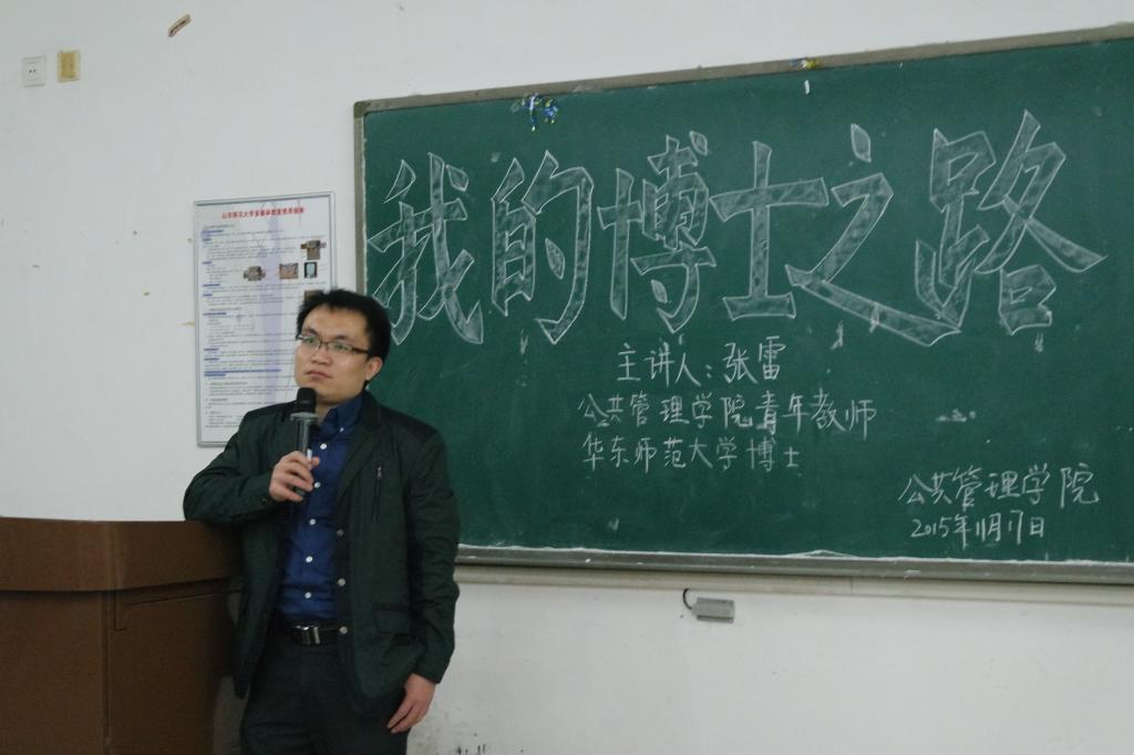 为提升学生专业素养,强化学风建设,11月17日,英国365集团于长清湖校区综合教学楼C区426教室举办“我的博士之路”系列讲座第四场。本次讲座由英国365集团青年教师、华东师范大学博士张雷担任主讲人。2014级同学到场学习讲座精神。