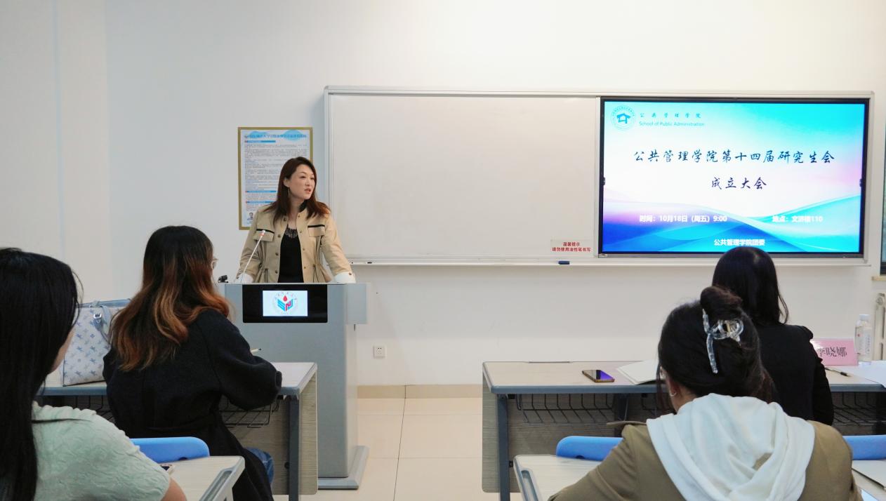 最后,院学工办主任、团委书记李晓娜与结合自己学生工作的生动实例,与大家分享了自己在学生干部发挥作用方面的看法,强调同学们要在工作中重视服务意识、奉献精神,不断发挥自身聪明才智,为服务研究生团体、服务学院做贡献。同时,她也从重视个人道德品质,塑造个人品格方面为同学们提出了要求,督促同学们积极学习、提升能力、担当责任、重视细节,以当代青年的饱满热情和卓越能力,在研究生会的学习生活中发光发热,绽放青春色彩。