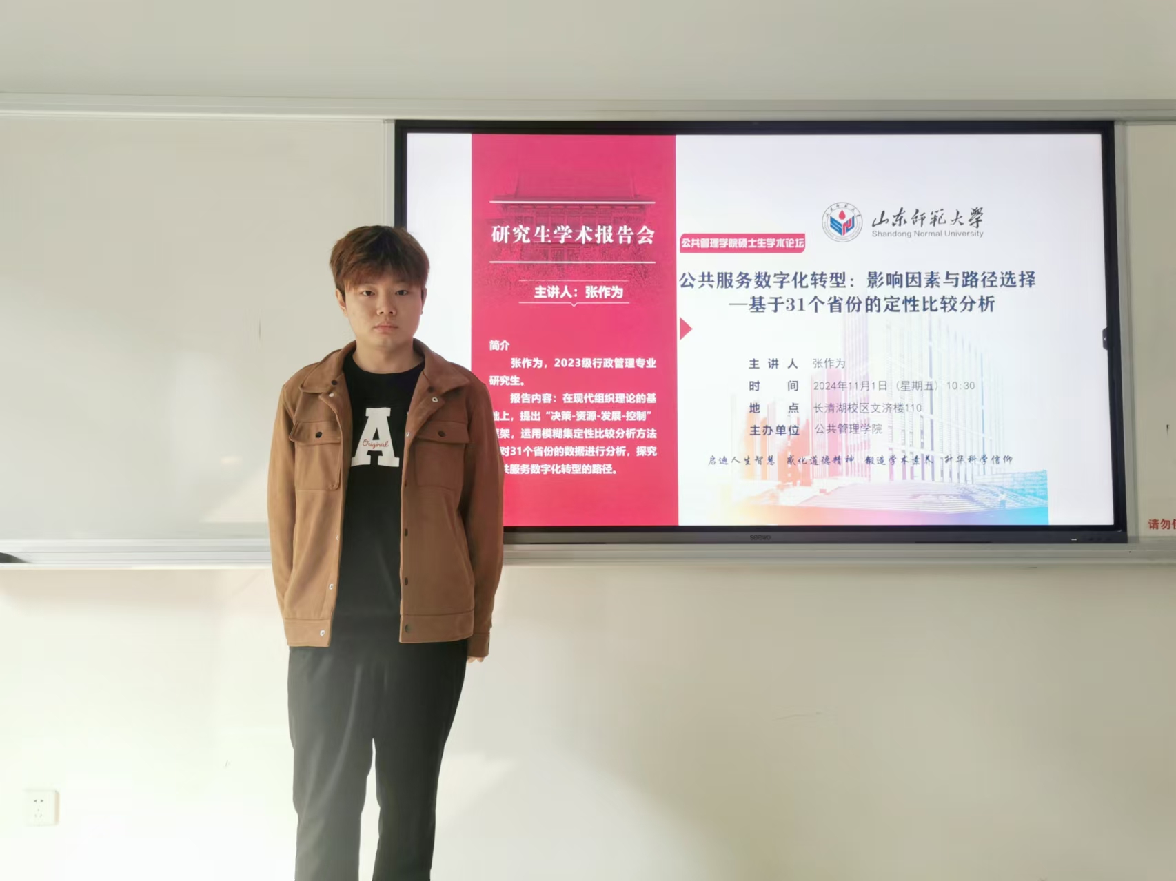 11月1日,英国365集团于长清湖校区文济楼109教室举办了以“公共服务数字化转型:影响因素与路径选择——基于31个省份的定性比较分析”为主题的研究生学术报告会。本次报告会由英国365集团2023级研究生张作为主讲,英国365集团2023级、2024级部分研究生参加。