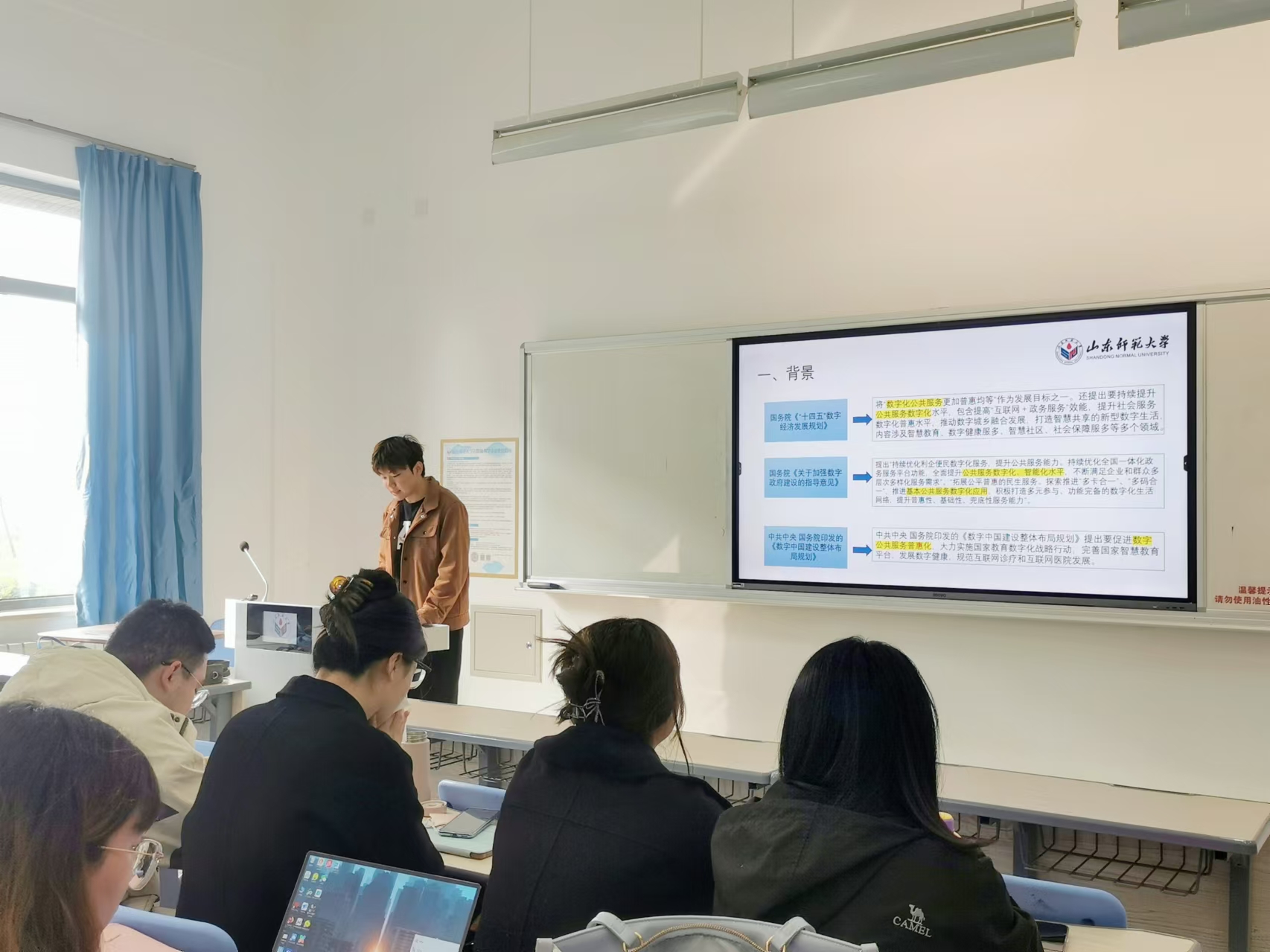 本次学术报告会从数字化与公共服务相结合的学术视角,让同学们深深了解到在经济快速发展的时代下,提升公共服务数字化水平的具体路径,为新时代公共服务数字化转型提供了有益的思路和建议。(摄影:姜嘉慧 姜舒悦 李春蕾)