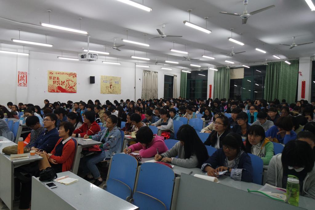 讲座在热烈的掌声中拉开了帷幕。首先,狄雷向大家阐述了自己四年本科以及博士生涯中的经验教训,教育大家珍惜大学生活,珍惜青春年华。接着,狄雷提出了“何谓大学?”“何谓完美的大学生活?”等一系列问题并做出详细解答,最后总结出对大学的四大认识:第一,大学是学术圣地,是做学问的地方,大学里充满自由、理想和思想碰撞;第二,大学是联系家庭与学校的纽带,是进入社会之前的训练场;第三,大学是交友场所;第四,大学能赋予我们一个“标签”,每一个走出校门的学子都挂着学校的“标签”。随后,狄雷就怎样度过美好的大学四年提出建议与期望,他告诫大家加强运动,投资健康;努力学习,投资大脑;珍惜时间,广交朋友等等。他希望在场每一位同学都能做一个健康、有原则、广交朋友的阳光大学生。最后,狄雷与同学们亲切互动并认真解答了同学们的问题。同学们认真听讲,受益匪浅。