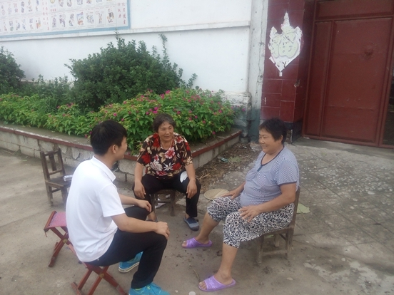 队长赵吉新同学与村民交谈询问石横六村发展状况