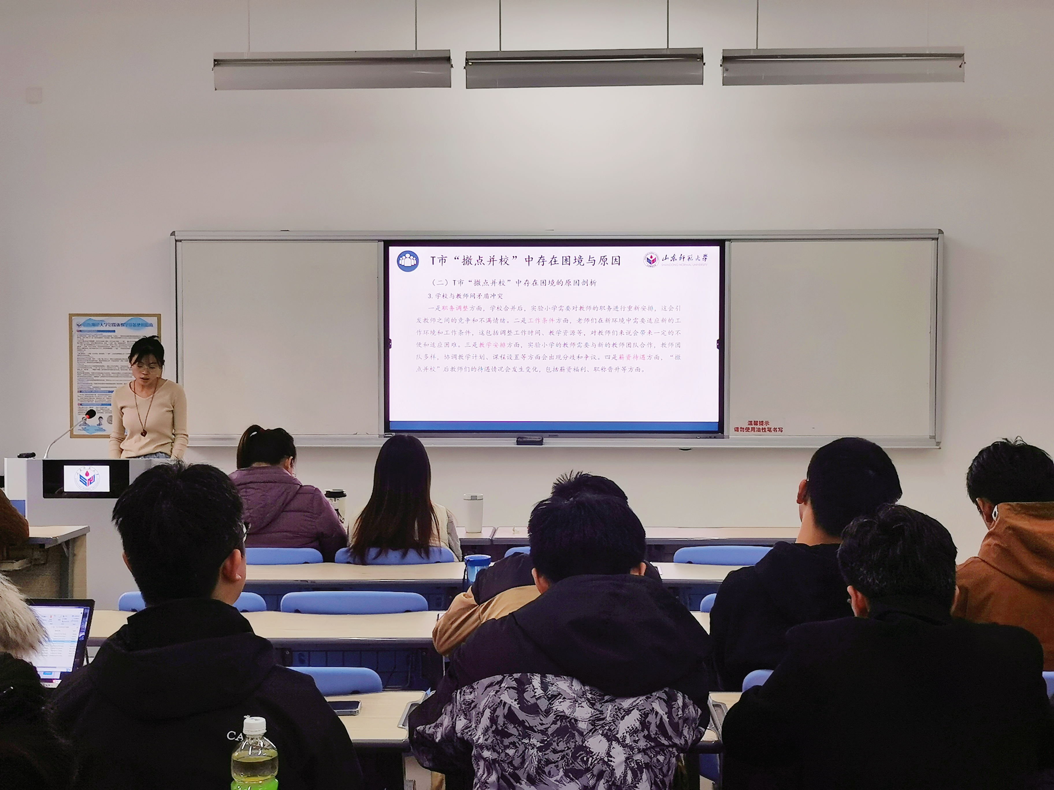 本次学术报告会从乡村教育改革的学术视角,让同学们深深了解到在经济快速发展的时代下,提升乡镇教育水平的具体路径,为新时代乡镇学校转型提供了有益的思路和建议。(摄影:李春蕾 姜嘉慧 姜舒悦)