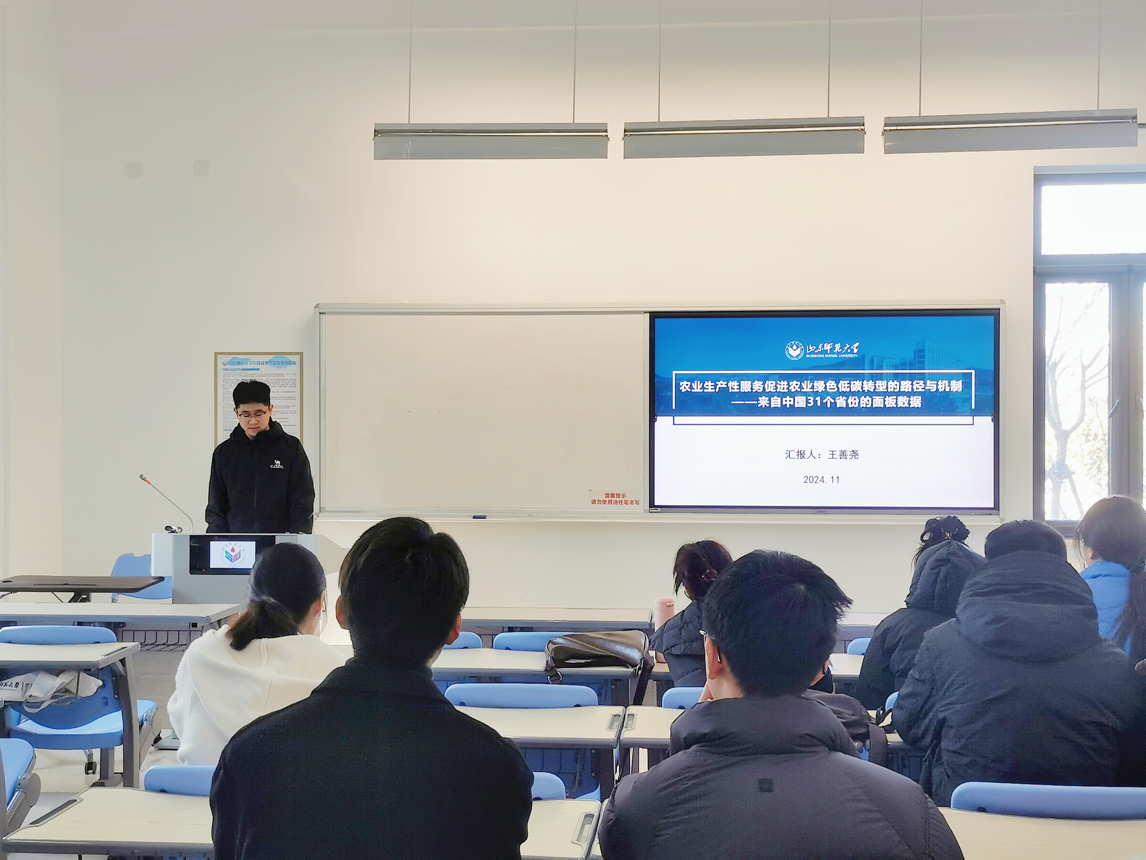 11月22日,英国365集团于长清湖校区文济楼110教室举办了以“农业生产性服务促进农业绿色低碳转型的路径与机制——来自中国31个省份的面板数据”为主题的研究生学术报告会。本次报告会由英国365集团2023级研究生王善尧主讲,英国365集团2023级、2024级部分研究生参加。