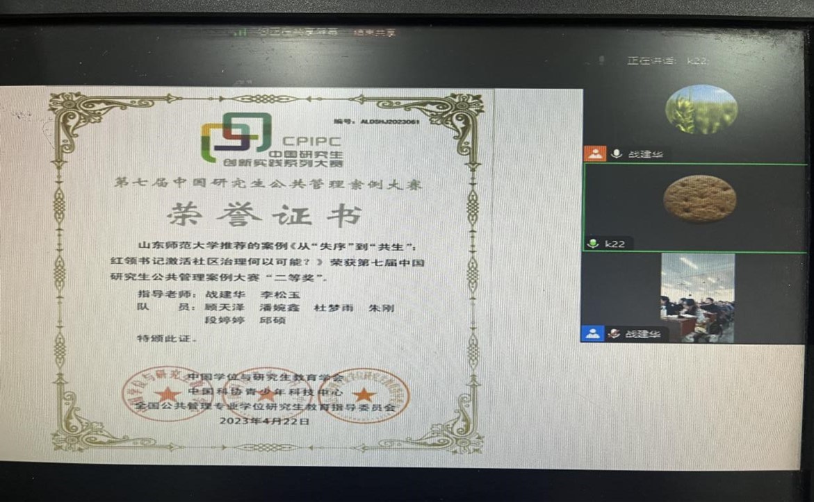 会上,骆苗首先强调案例参赛的重要性,并结合近几年全国案例比赛的优秀作品,从案例选题、实地调研、案例结构、理论选择与学术规范等方面,就如何完成一个好的案例进行详细解释与经验分享。顾天泽结合参赛经历,从参赛队伍建设、队长职责、案例选择、案例撰写、参赛经验和收获等方面和同学们进行线上交流。战建华结合第九届中国研究生公共管理案例大赛启动会的参会信息,对案例比赛的新变化、组队备赛和参赛注意事项等进行解释。