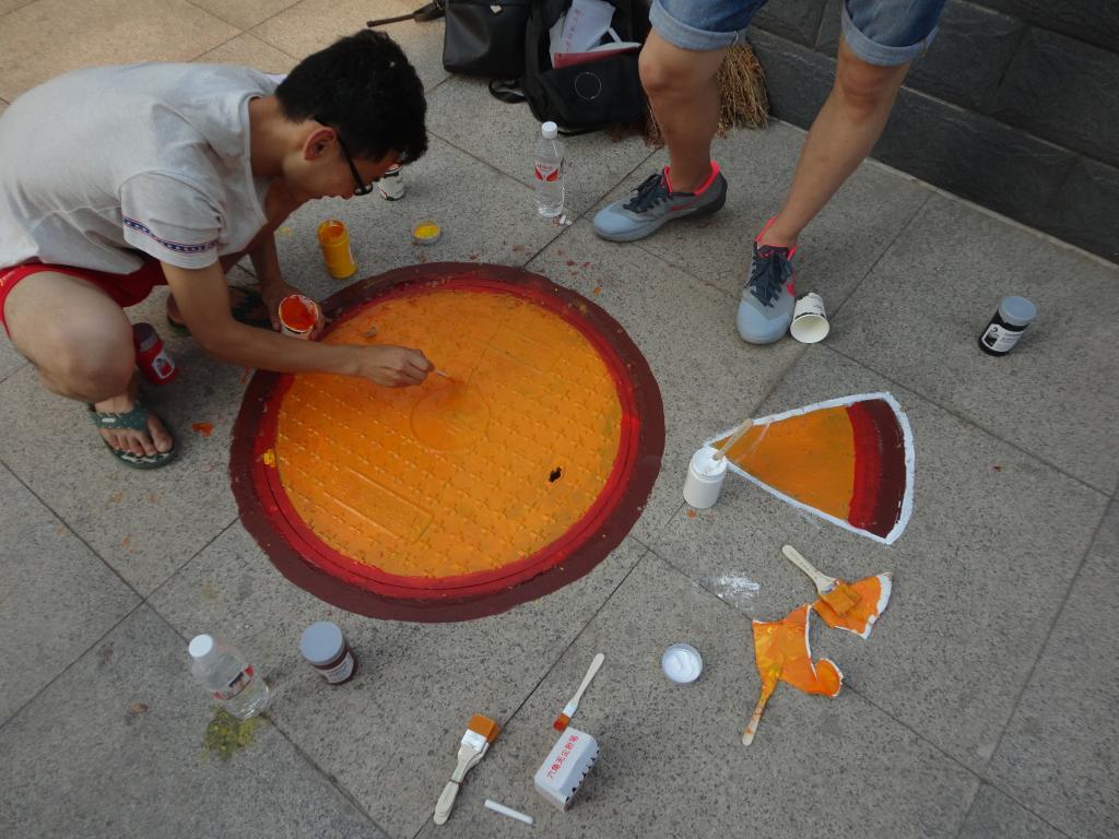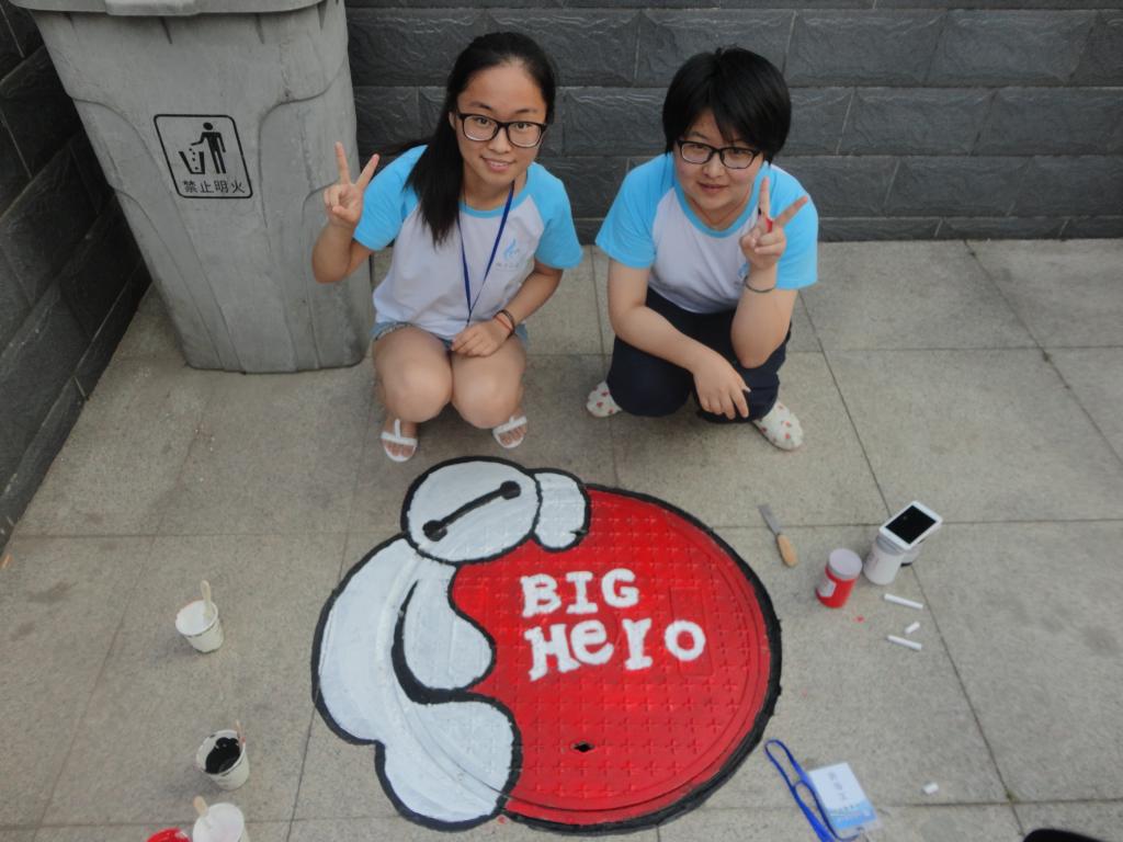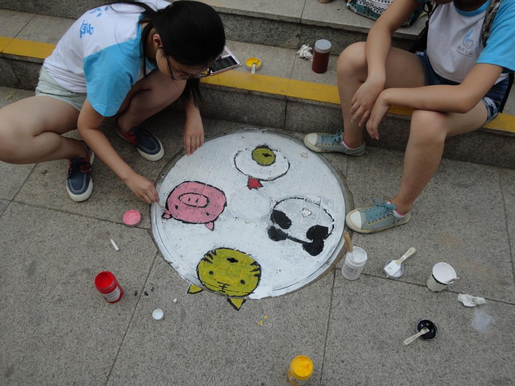 在前期的准备活动中,志愿者们对图案构思、颜色布局等相关问题进行了交流探讨,为活动的顺利开展打下良好基础。在志愿者们领取绘画材料之后,紧张而有趣的“扮靓井盖先生”活动正式拉开序幕。同学们大展身手,各显神通——多啦A梦、海绵宝宝等卡通人物仿佛带领人们重温了童年时光,各种美食图案让人口水直流......小区居民纷纷驻足观看,更有儿童主动要求加入,与志愿者们一起一展风采。活动后期,小区领导表示了对此次活动的支持并代表小区居民表示了对学生到来的感谢。此次活动持续两天,志愿者们创意无限,将为常春藤小区注入更多活力。