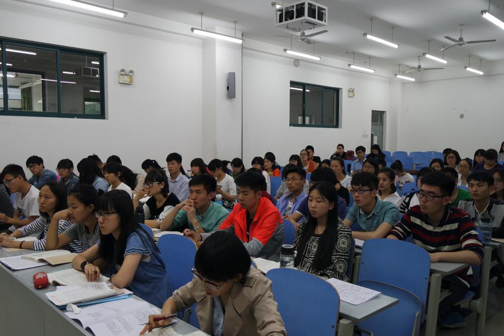 课程伊始,王金山带领学员们回顾了建党史上的大事件,并从总纲讲起,详细介绍了党章的相关情况,与同学们一起学习了中国共产党的性质、指导思想以及发展党员的条件和党的组织制度等。王金山着重讲述了中国共产党在经济、政治、文化、社会和生态文明方面的“五位一体”建设。他指出,中国共产党是为人民服务的政党,党的建设必须坚决实现以下四项基本要求:第一,坚持党的基本路线;第二,坚持解放思想,实事求是,与时俱进,求真务实;第三,坚持全心全意为人民服务;第四,坚持民主集中制。随后,王金山结合时事热点提到“心中有党,心中有民,心中有责,心中有戒”的“四有”要求以及习近平总书记“三严三实”的讲话,“既严以修身、严以用权、严以律己,又谋事要实、创业要实、做人要实”。最后,王金山期望同学们端正入党态度,鼓励大家好好学习,在思想、学习、工作和生活等各个方面严格要求自己,积极主动向党组织靠拢,争取早日入党。