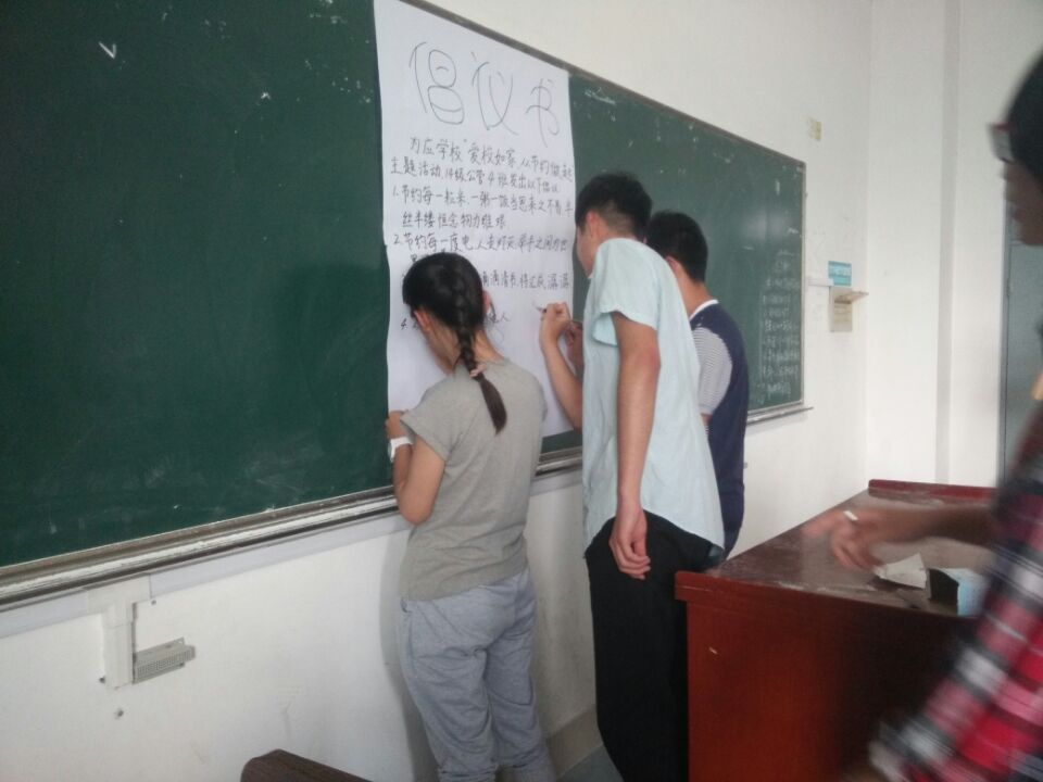 本次活动一经发起,就受到了学院各团支部的积极响应,各团支部接到要求后立即积极组织班级同学开展形式多样的活动。13级社保专业的主题是“将节约常态化”,即是将节约表现在生活中的点点滴滴,譬如,同学们自己制作节水节电等卡片,贴在水龙头或者开关旁,时刻提醒自己;14级城管班则采用了别具一格的方式——变废为宝,以物易物。她们开展了收集易拉罐矿泉水瓶的活动,全员出动,把宿舍里的瓶瓶罐罐收集了起来,还发动邻近宿舍一起行动,收集了百余个饮料瓶,并将其制作成精美的装饰品。除此以外,还在高晓君、贾贞等同学的带领下,城管班的同学在空闲的时间,帮助楼管阿姨打扫卫生。即使炎热的天气,繁重的劳动,同学们仍干劲满满,在提升了自己居住环境的同时,也体验到了楼管阿姨的不易;13级行管班和14级公管2班都采用画报的形式表达 “爱校如家,从节约做起”,大家把自己对节约的理解插上美的翅膀,生动地体现在画报上,活动结束后,学院还挑选出了其中优秀的画报作品,将其张贴在宣传板上,更好地向往参观的同学传递了节约意识;14级公管3班采用主题团日的方式,同学们在班会中各抒己见,最后由党员彭永菲上台宣读倡议书,对大家如何在日常生活做到“爱校如家”提出了具体要求;13级公共事业管理2班、14级公管4班和14公管1班都采用倡议的方式开展活动,即在发动大家在倡议书上签字的同时,还向全院发起了“提前关灯一小时”的倡议,得到了大家的广泛支持,更加深了大家对于保护环境,勤俭节约所肩负的责任。