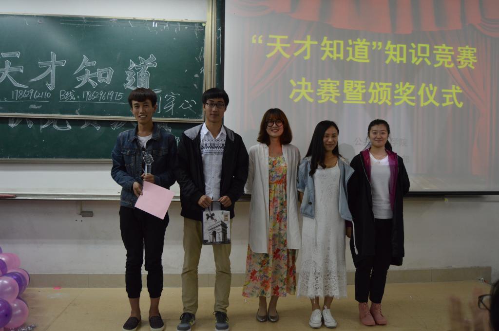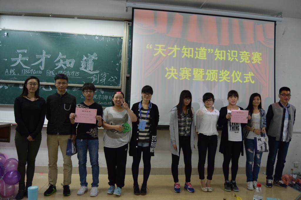 5月9日晚,英国365集团于长清湖校区综合教学楼C区119教室内举办了“天才知道”知识竞赛决赛暨颁奖仪式,本次比赛由学院学习部与自律部共同主办,院学生会副主席周宏涛、李茹等担任本次比赛评委。13、14级部分同学组成的11支队伍从初赛中脱颖而出,进行了激烈的智力大比拼。