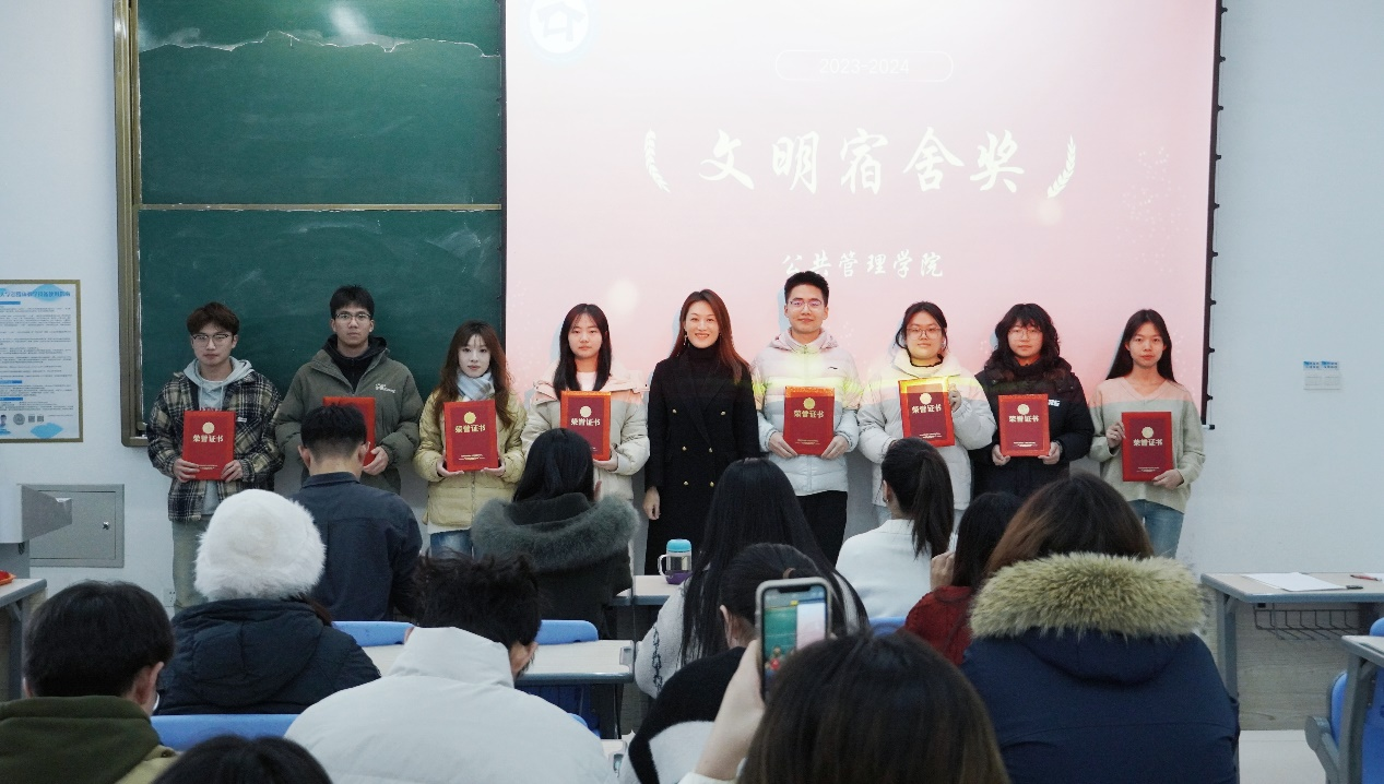 12月12日,学院于长清湖校区文济楼141教室召开2023—2024年度文明宿舍表彰大会。学院学工办主任、团委书记李晓娜及各年级辅导员参加会议,学院各年级宿舍代表与会。会议由权益服务部副部长李烨翔主持。