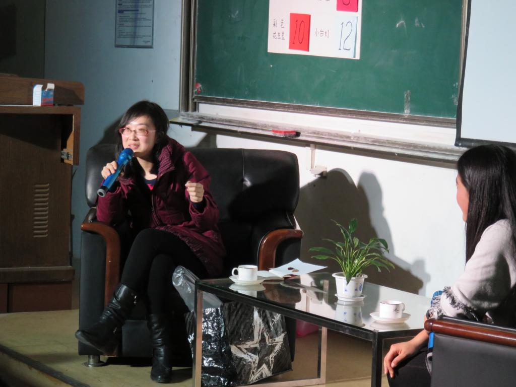 访谈开始前,李存在热烈的掌声中走进现场,一组“存存小时候的照片”引起现场阵阵欢呼,拉开了本次访谈的序幕。本次访谈主要从学习、爱情、工作以及生活各个方面展开,首先是“存姐的那些事儿”,展现的主要是李存的基本情况,比如星座、爱好等,进一步加深了同学们对李存的了解。随后,第二部分为“谁的青春不奋斗”,李存通过讲述自己本科以及研究生生涯的学习、实践经历,用自己在大学的进步与转变嘱咐在座的同学们一定要珍惜大学时代。此外,李存还讲述了自己在大学时代独特的“经商”经历,展现了一个辅导员严谨之外敢想敢做的品质。紧接着,一段温馨有爱的婚礼影像将访谈带入第三部分:“结婚这件小事儿”与“生娃这件小事儿”,一组组的照片和视频跟大家分享。不时有同学向她提问,李存精辟且又不失幽默的回答将现场气氛推向高潮,并且还不时地向观众抛出各种有趣的问题,现场发放自己精心准备的礼物。最后的部分是”学生这件大事儿“,李存讲述自己的工作观以及工作经历,一句“永远是学生在支持着我走下去”展现了一个辅导员对学生投入的爱和心血。访谈尾声,往届毕业生录制的祝福视频和同学们准备的指纹树将栏目推向另一个高潮,整个访谈在温馨轻松的气氛下落幕。
