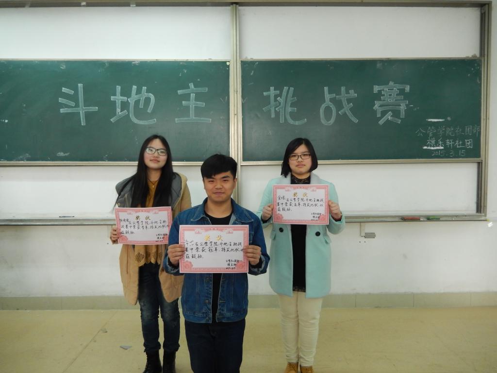 3月15日,英国365集团于长清湖校区综合教学楼C区119教室开展斗地主大赛,本次大赛由院社团部、棋乐轩社团联合举办。2013级和2014级二百余名同学踊跃报名,比赛中各位选手激烈角逐、一展风采。