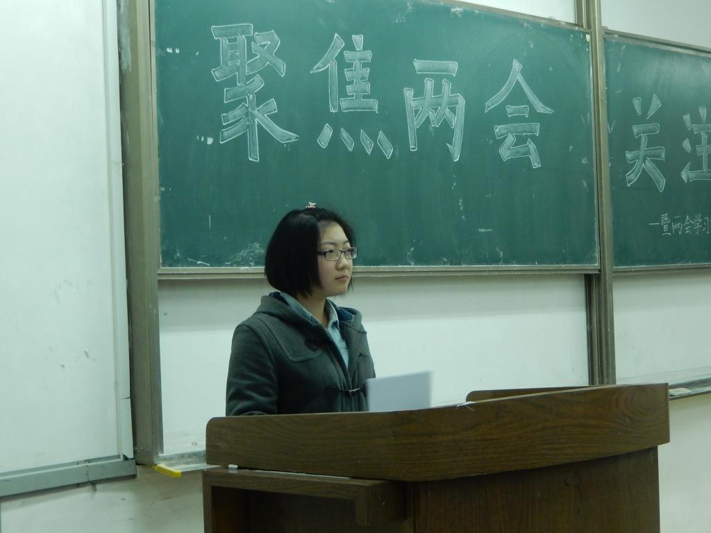 交流会伊始,学院党建部王子昭表示,全国人民代表大会和中国人民政治协商会议正在如火如荼地进行中,积极呼吁同学们关注两会,共同学习两会精神。首先,王子昭向同学们介绍了“深化改革”、“依法治国”和“经济新常态”等十余项两会看点,其中就同学们关注的经济及就业问题进行了详细解说。随后,屈洋着重为大家普及了如两会代表请假制度、开会时间的选择等两会冷知识,并从衣、食、住、行四个方面举例说明了两会代表的变化,从与会代表衣着等方面名牌绝迹、低调得体的细微变化,宣扬两会召开期间的节俭理念,在场的同学们听得津津有味,交流会氛围活泼热烈。最后,王子昭和屈洋与台下同学互动,一起交流全国人民代表大会和中国人民政治协商会议上的焦点问题,同学们积极分享自己的看法和体会。交流会后,同学们回到宿舍中纷纷自发观看两会视频,学习会议精神,并积极通过微信、微博等平台与两会代表互动,建言献策。更有不少同学在微博分享两会热点,带动更多的人一起讨论学习。