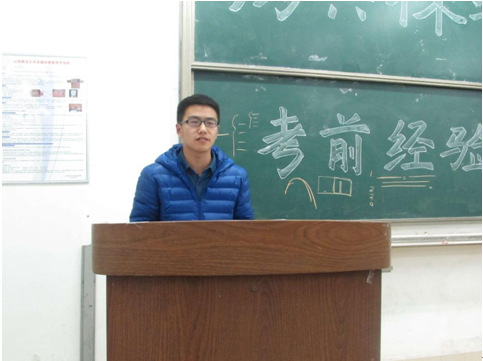 会议中,学习部部长董璇首先向同学们阐释了本次期末考试的重要性,并结合自身的学习历程对同学们作出了相关指导,同时,她激励同学们学习贵在坚持,少些浮躁。随后,由来自13级的四位优秀学生代表依次与同学们分享宝贵的学习的经验,分别就具体学科提供了不同的复习方法。