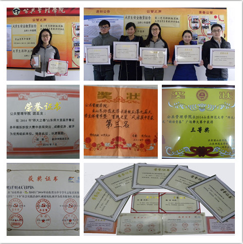 我院2011级公事2班王未同学和2012级行管1班孙蕾同学获2014年国家奖学金,2013级行政管理卓越班杨洁同学和2012级社保2班李晓玉同学获英才奖学金,2012级行管1班孙蕾同学获校级优秀学生干部标兵称号等。这些同学学习勤奋认真,工作细致,为全院学生树立了榜样,使学院的学习氛围更加浓厚。