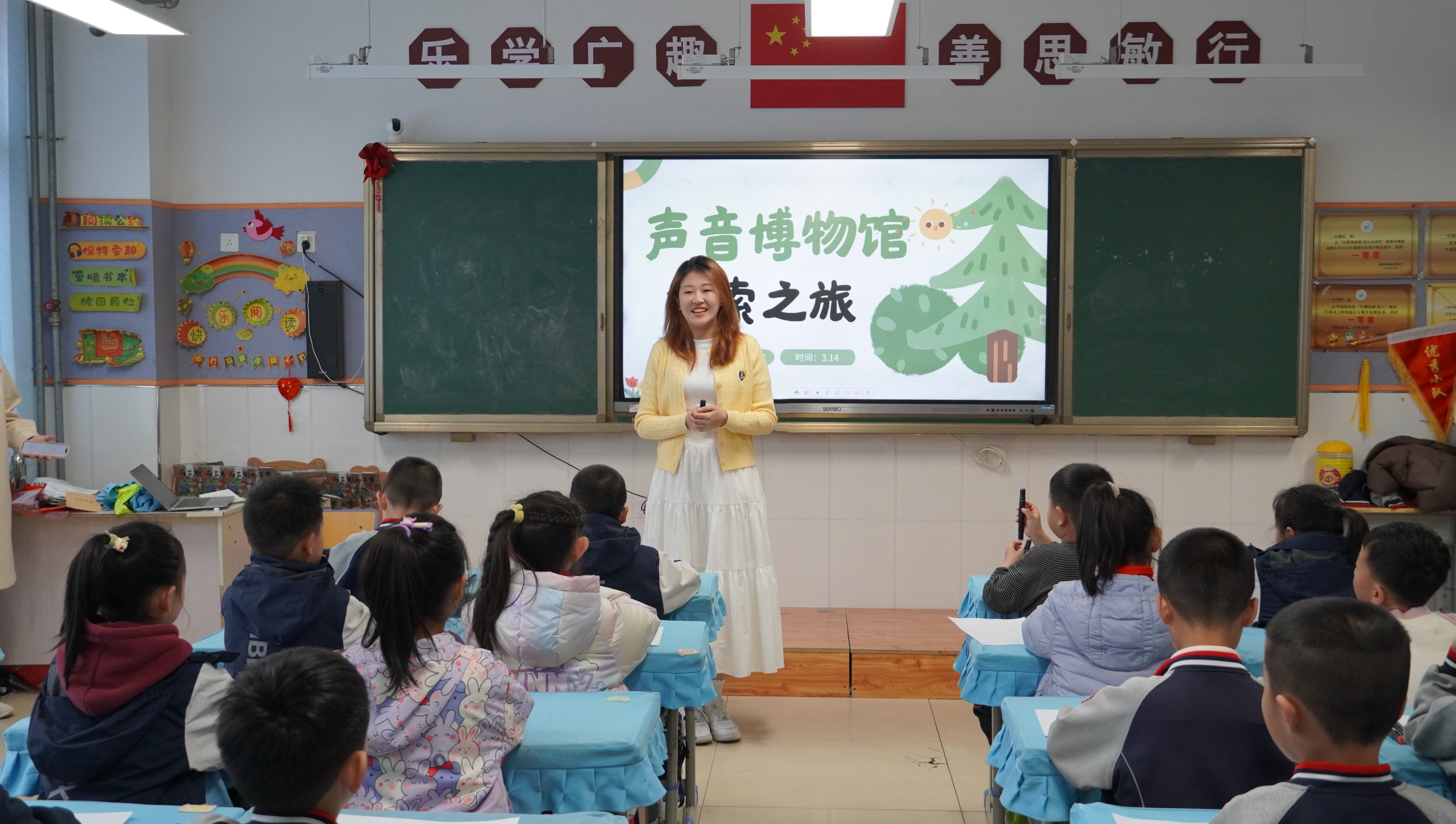伴随着优美的上课铃声,二年级四班的同学们与志愿者一起,共同开启一场“声音博物馆”心理疗愈之旅。主讲人杜佳颖在课堂上担任了“讲解员”的角色,带领同学们共同穿越生活馆、自然馆、人文馆。在不同的馆里,每位同学都是声音世界的小主人。生活馆中,杜佳颖给同学们播放了来自生活中的不同声音,引导学生观察生活、体会生活之美。生活馆之旅结束后,杜佳颖带领学生走进自然馆中,通过“声音地图”的游戏是学生发挥想象力,发展学生与自然的共生力。而人文馆则为学生展现了重要的历史时刻,传播红色精神和民族记忆。这三个环节的设置将现场气氛逐渐推向热烈,每个人都沉浸在与声音的交流中,不知不觉间拉近了与自己内心的距离,在潜移默化中培养管理情绪的能力。同学们纷纷表示要在日常生活中有意识的感受内心独特的声音,学会辨别并调节自己的情绪,从而提升情绪的认知能力和心灵的疗愈能力。