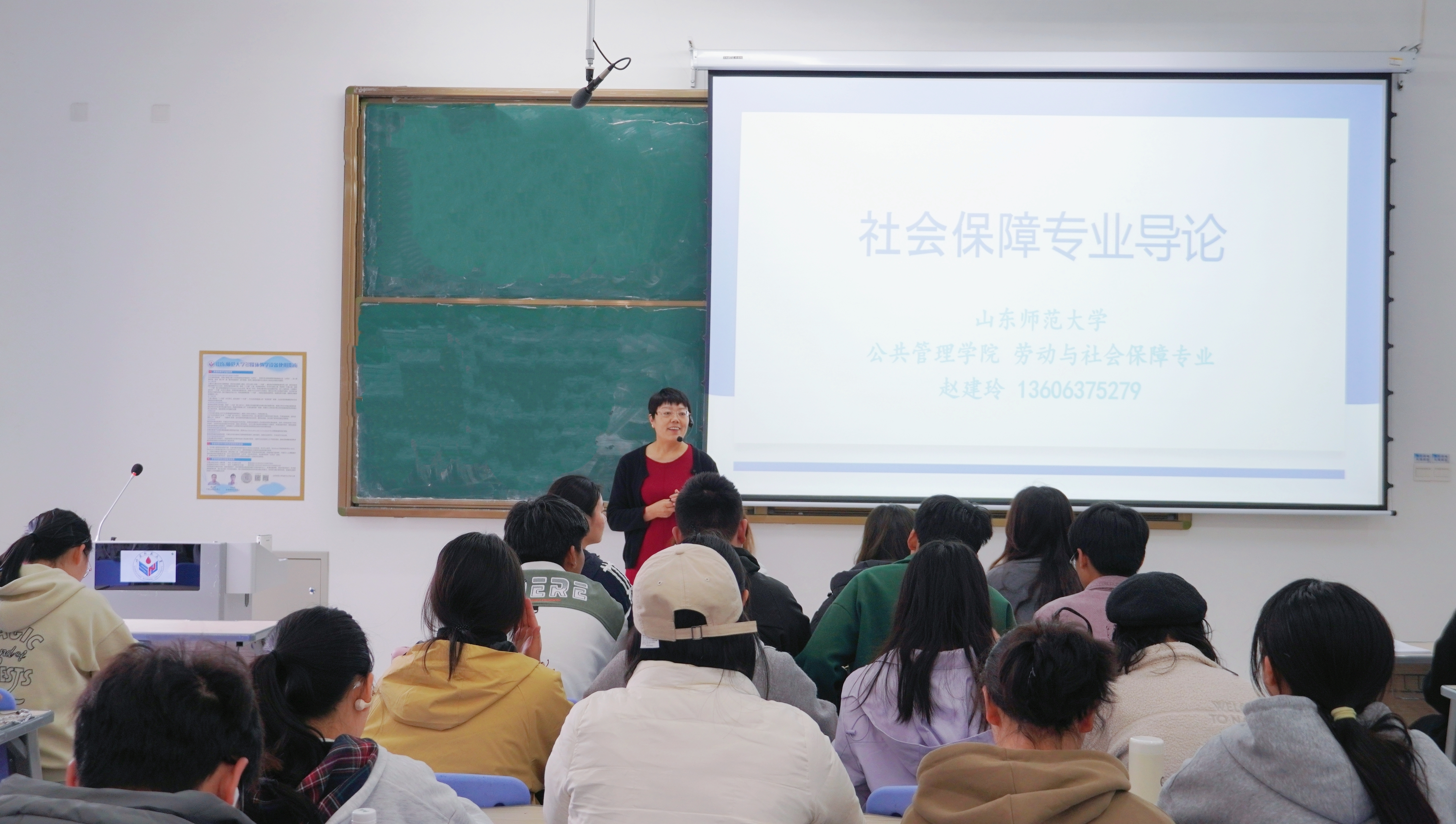 课堂展示环节,赵建玲将“社会保障专业导论”课程拆分为“社会保障是什么”与“社会保障学什么”两大主线,系统阐释了我国社会保障体系的五大支柱,结合“五险一金”政策调整、退役军人优待等社会热点,剖析了制度背后的民生关怀。在专业培养环节,赵建玲重点介绍了“本科生导师制”“学术沙龙”“社保实训平台”等特色育人模式,强调理论与实践并重的培养理念。课堂通过提问互动、案例研讨等形式,激发学生对社会治理的深度思考。