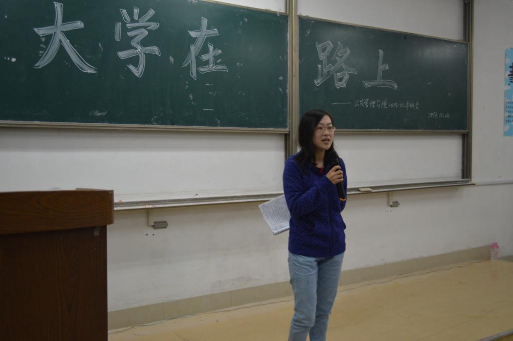 李存在会议伊始就走进同学们中间,以近距离交流的方式为新生讲话。其间,她生动活泼地引用生活中她的亲身经历以及所见所闻深入对话题的探讨、使学生们进行深刻的反思。她的讲话主要分为四个方面:第一,学会适应大学生活,既来之则安之,所有遇见的不快都可以化解,既存的规则定有被遵守的合理性,而抱怨无济于事。第二,个人高度决定生活圈层次,同学们应该在有限的时间里抓住机会锻炼自身,勇往直前,提升自身层次。第三,大学生活中应勇于走出去尝试,勿需畏惧犯错,所有错误都是你将来成功的垫脚石,而来自他人的评判更是弥足珍贵。第四,处理好人际关系,不断发现别人的闪光点,宽容他人、真诚待人。她还例举了几个普遍的面试问题,包括如何处理学生会部门举办活动遇到的突发状况,以此告诫同学们做事应灵活,多角度思考。她幽默风趣的语言不时引得同学们忍俊不禁、连连点头,可其具有的实际意义也使同学们铭记在心。