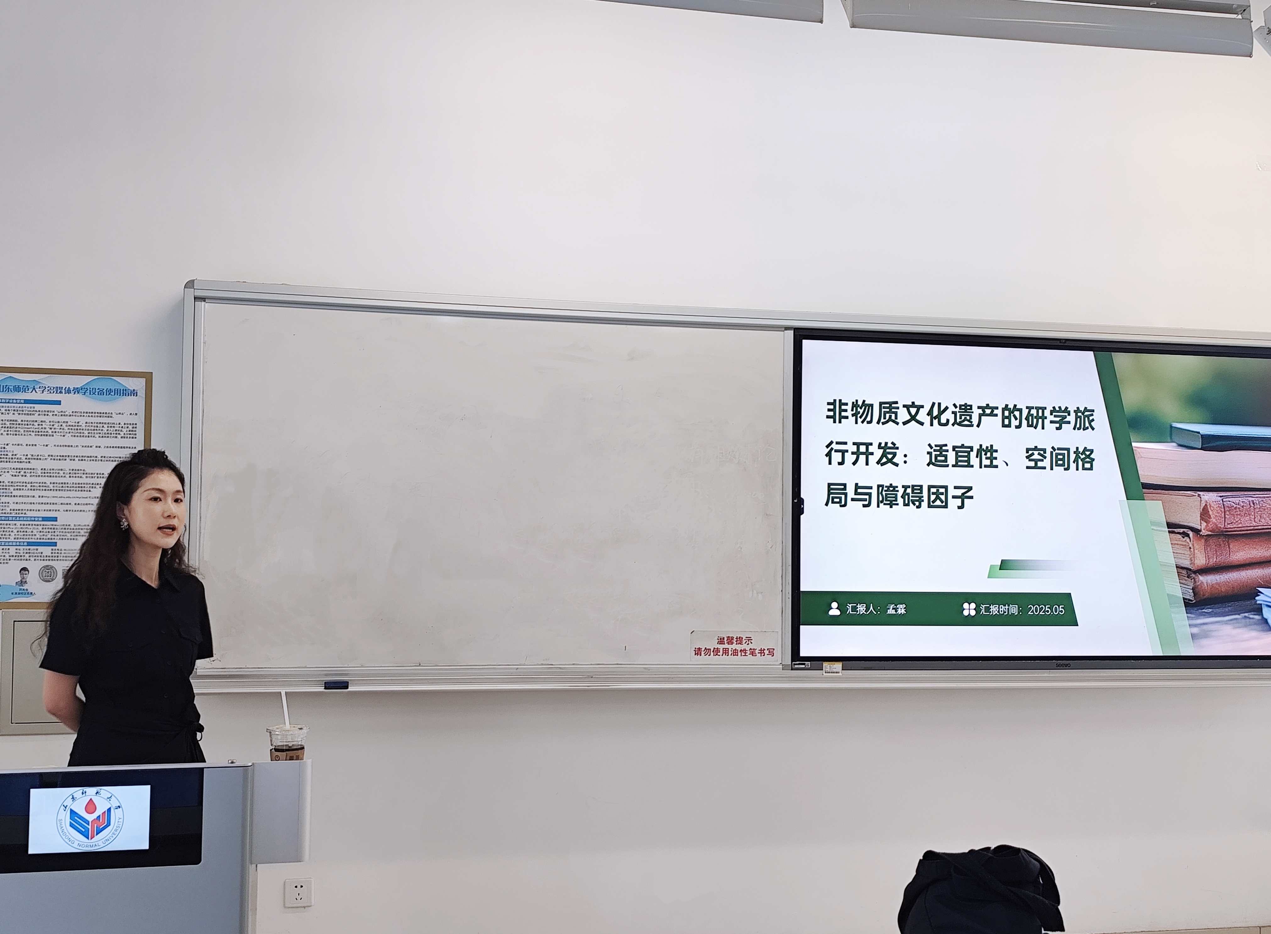首先,孟霖阐述了该研究的政策背景,即国家政策推动非遗保护与旅游融合,以及地方政策助力非遗研学旅行开发。同时,主要涵盖以下三方面意义:避免过度开发,实现发展平衡,通过适宜性评价确保非遗资源的可持续发展;优化区域协调与资源分配,定量评价微观单元适宜性,实现优势互补;推动非遗传承与教育普及,增强文化自信,推动非遗文化创新发展。