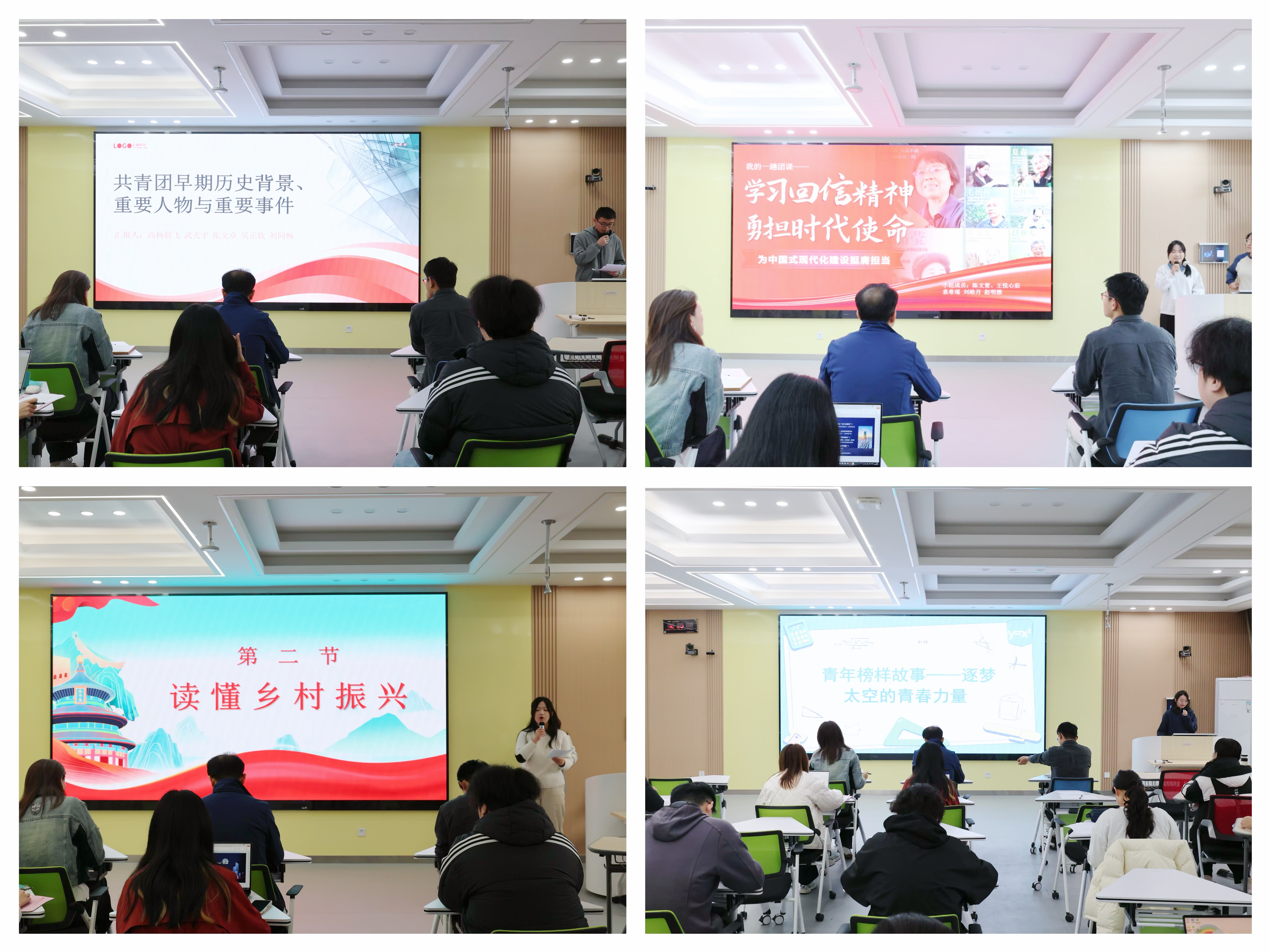 活动中,各组代表依次上台展示。团课内容涵盖乡村振兴的实践探索、见贤思齐的榜样故事、薪火相传的历史回望与砥砺初心的信念锤炼,充分体现出同学们将团员身份内化于心的思想觉悟以及对践行青年使命的清醒认知。评委老师们对本次活动给予充分肯定,并勉励青年团员继续保持学习热情,把团课中所学所悟转化为持续成长的动力。